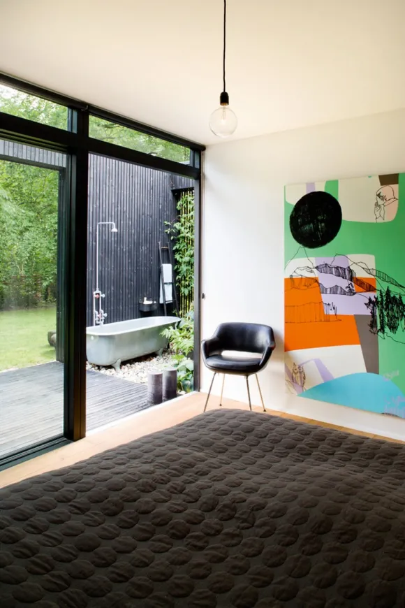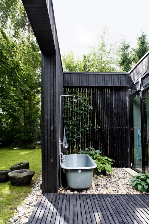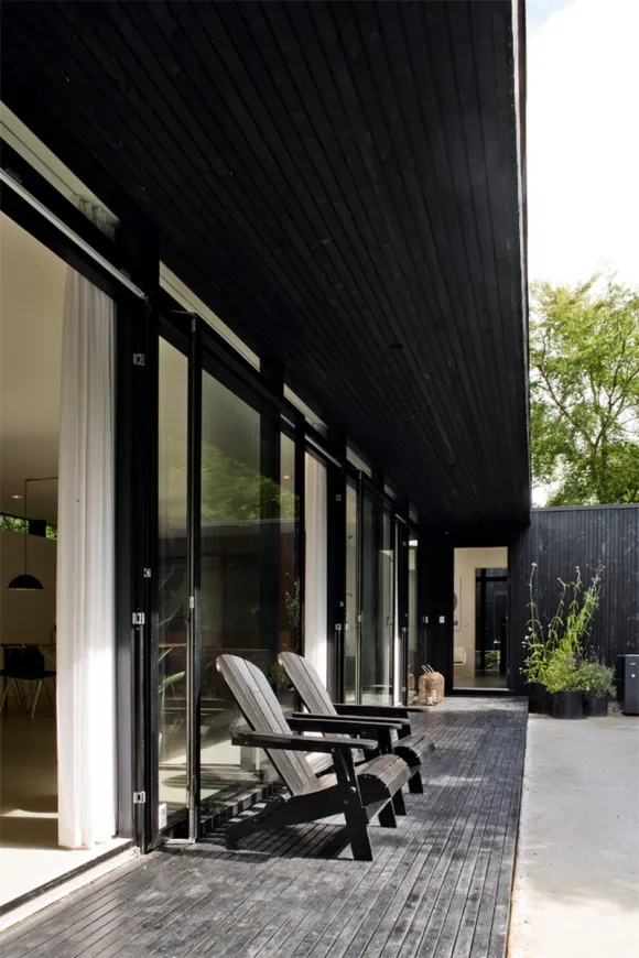 une maison d'été en bois noir Le propriétaire de cette maison souhaitait une construction très simple pour sa résidence d'été située au nord d'Aarhus au Danemark. Le résultat est une maison moderne en bois aux lignes rigoureuses. A summer home in black wood The owner of this home wanted a very simple construction for his summer residence located at north of Aarhus in Denmark. The result is a modern wooden house with rigorous lines.