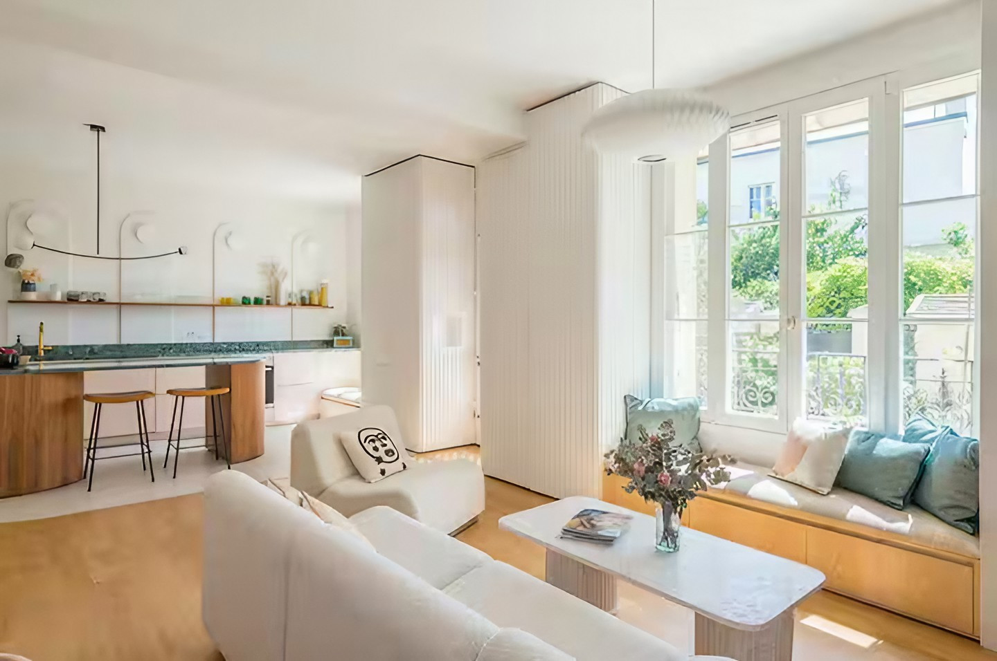 Protected by exposed stone walls and a perfectly maintained landscaped garden, this house located in a pretty town near Paris, and presented by Espaces Atypiques, is furnished with a chic urban look, a design that always delight lovers of pretty decorations, where colour brings life to spaces without overdoing it, and where styles blend to create a unique universe.