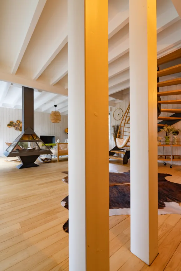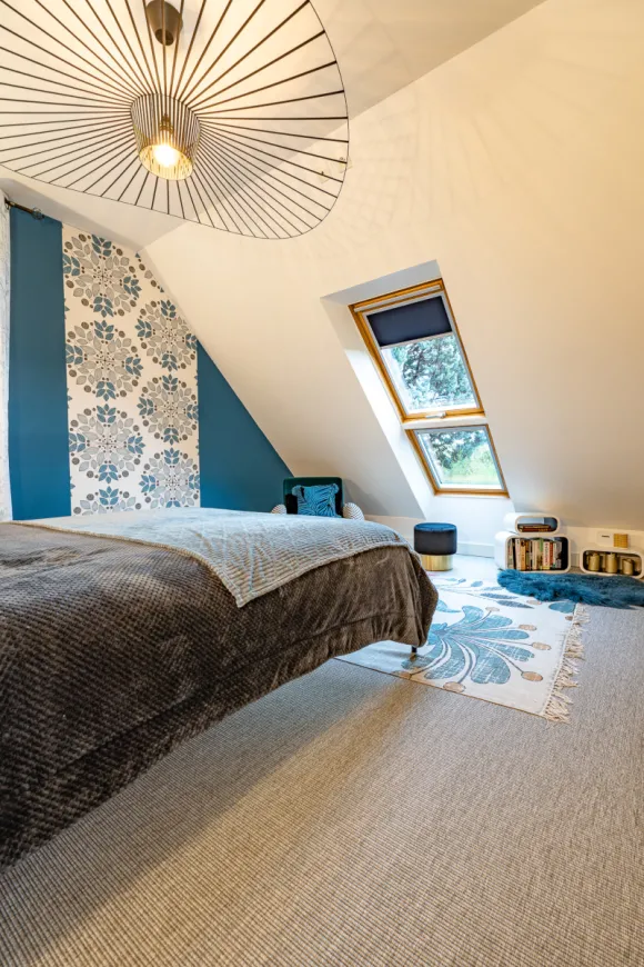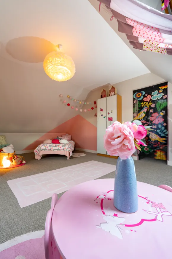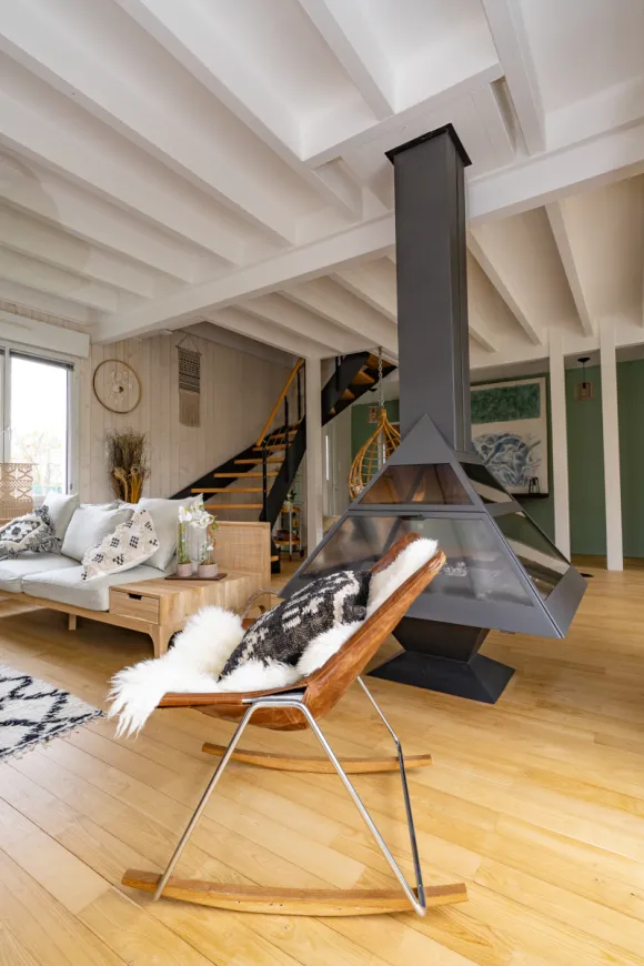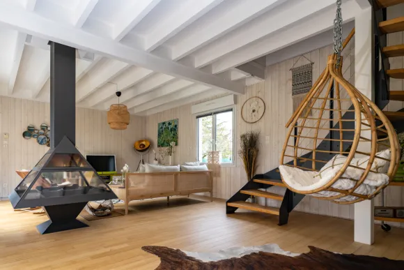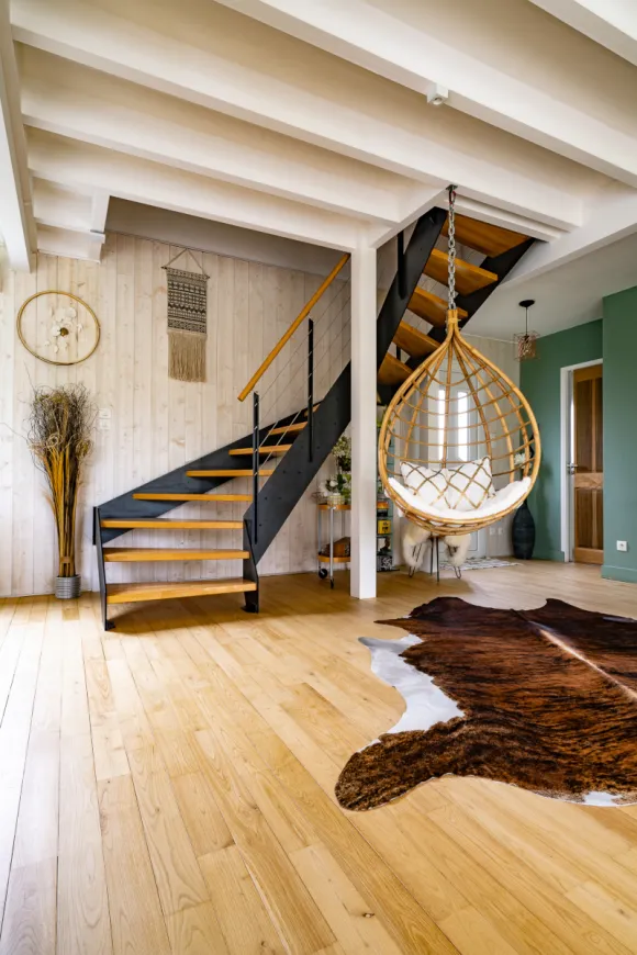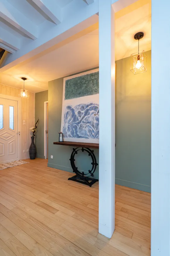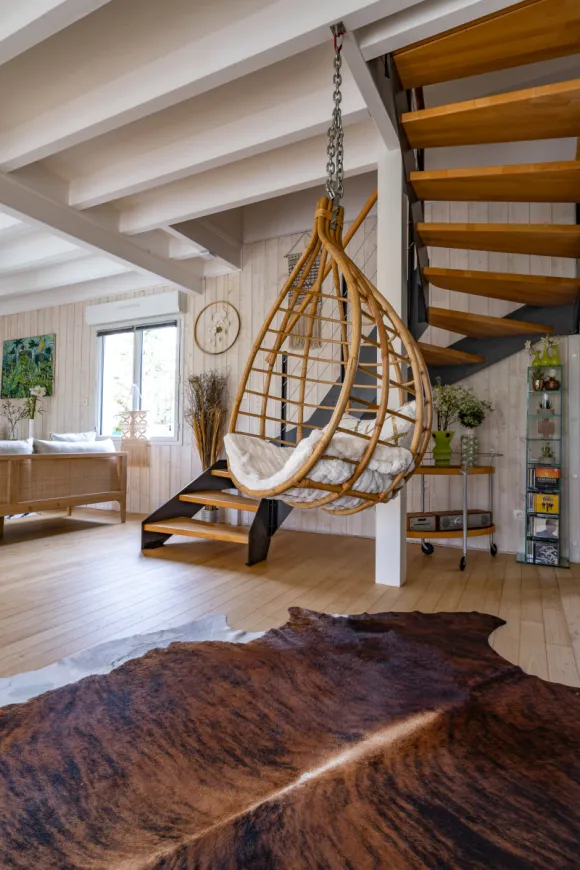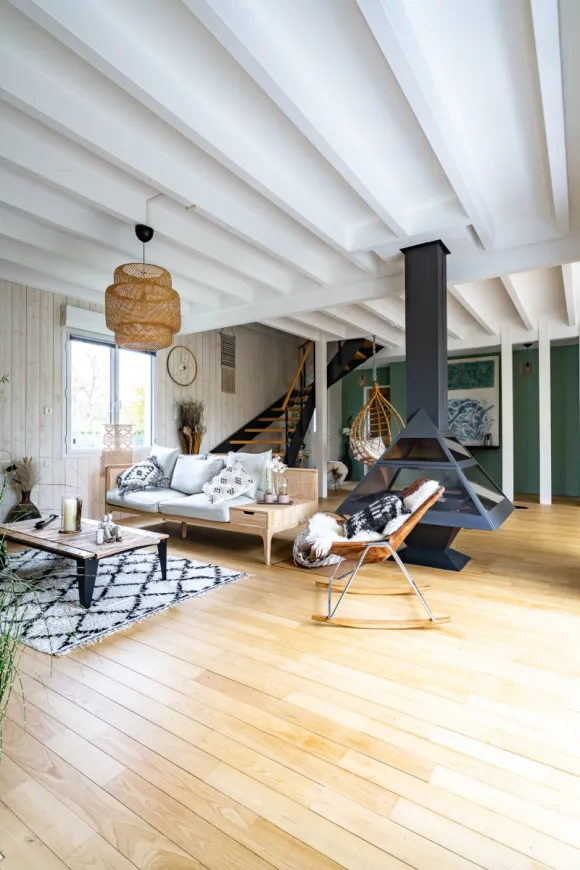 La nouvelle décoration d'une maison par sa propriétaire designer d'intérieur C'est à proximité de Tours que Barbara et sa famille ont décidé de s'installer il y a trois ans, dans un maison atypique en ossature bois rappelant le style des maisons de bord de mer américaines. J'avais déjà eu l'occasion de vous présenter les travaux réalisés en 2018 dans cet article, mais, comme toute décoratrice d'intérieur (créatrice de l'Agence Intérieur Vôtre) , Barbara ne peut s'empêcher de changer régulièrement la décoration et de repenser l'organisation des espaces. Par ailleurs, le couple a entrepris cet été l'aménagement du grenier, un petit espace très mansardé que Barbara a su optimiser pour en faire une véritable pièce supplémentaire, faisant office à la fois de salle de jeux et de lit-cabane pour les "pyjama parties" de Victoire (8 ans). La maison dégage une atmosphère douce et chaleureuse. Je vous laisse découvrir... Photo : Alain Joly