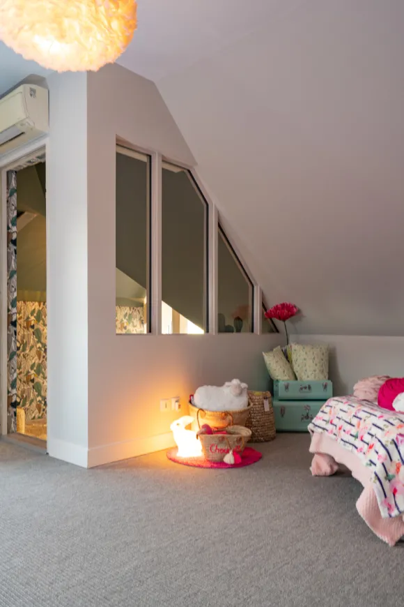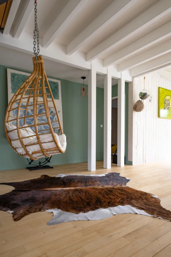 It is near Tours that Barbara and her family decided to settle three years ago, in an atypical wooden frame house reminiscent of the style of American seaside houses. I had already had the opportunity to present the work done in 2018 in this post, but, like any interior designer (creator of the Agence Intérieur Vôtre), Barbara cannot help but regularly change the decoration and rethink the organization of the spaces. In addition, this summer, the couple began work on the attic, a small, very sloping space that Barbara has optimized to make it a real additional room, serving both as a playroom and a bed-cabin for the "pyjamas parties" of Victoire (8 years). The house has a soft and warm atmosphere. I let you discover.... Photo: Alain Joly (thanks to Barbara for her confidence)