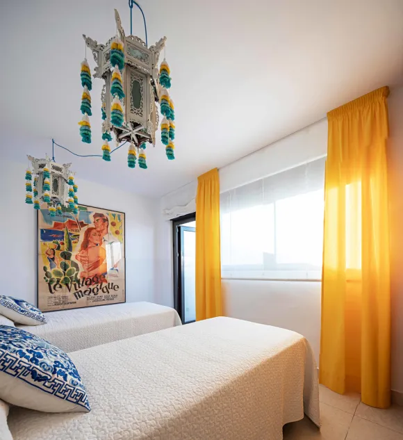 This house with a swimming pool for rent for holidays in Andalusia belongs to Federico Landín and is located near the beaches of Cabo de Gata. As it was impossible to find the house of his dreams in this part of the country, he decided to have it built after finding a well placed plot. The land was uneven, so he made the most of it, and the multi-storey house enjoys a magnificent view of the landscape from its upper terrace. The simple decoration uses local materials and is perfect for a holiday home, where most of the time is spent outside by the pool under the pleasant shade of the bamboo.
