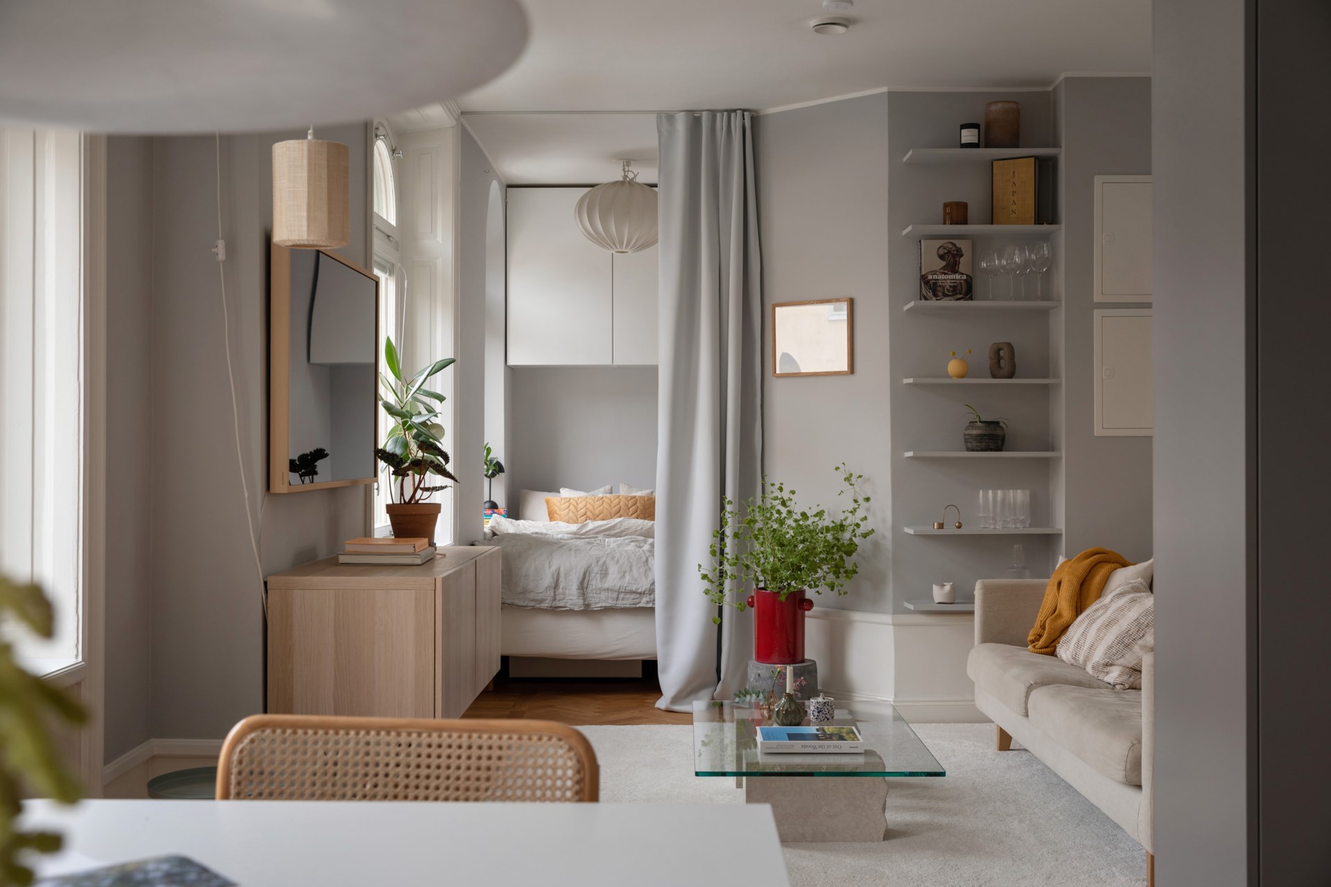 This 43m2 renovated apartment with an alcove bedroom is for sale at Historiska