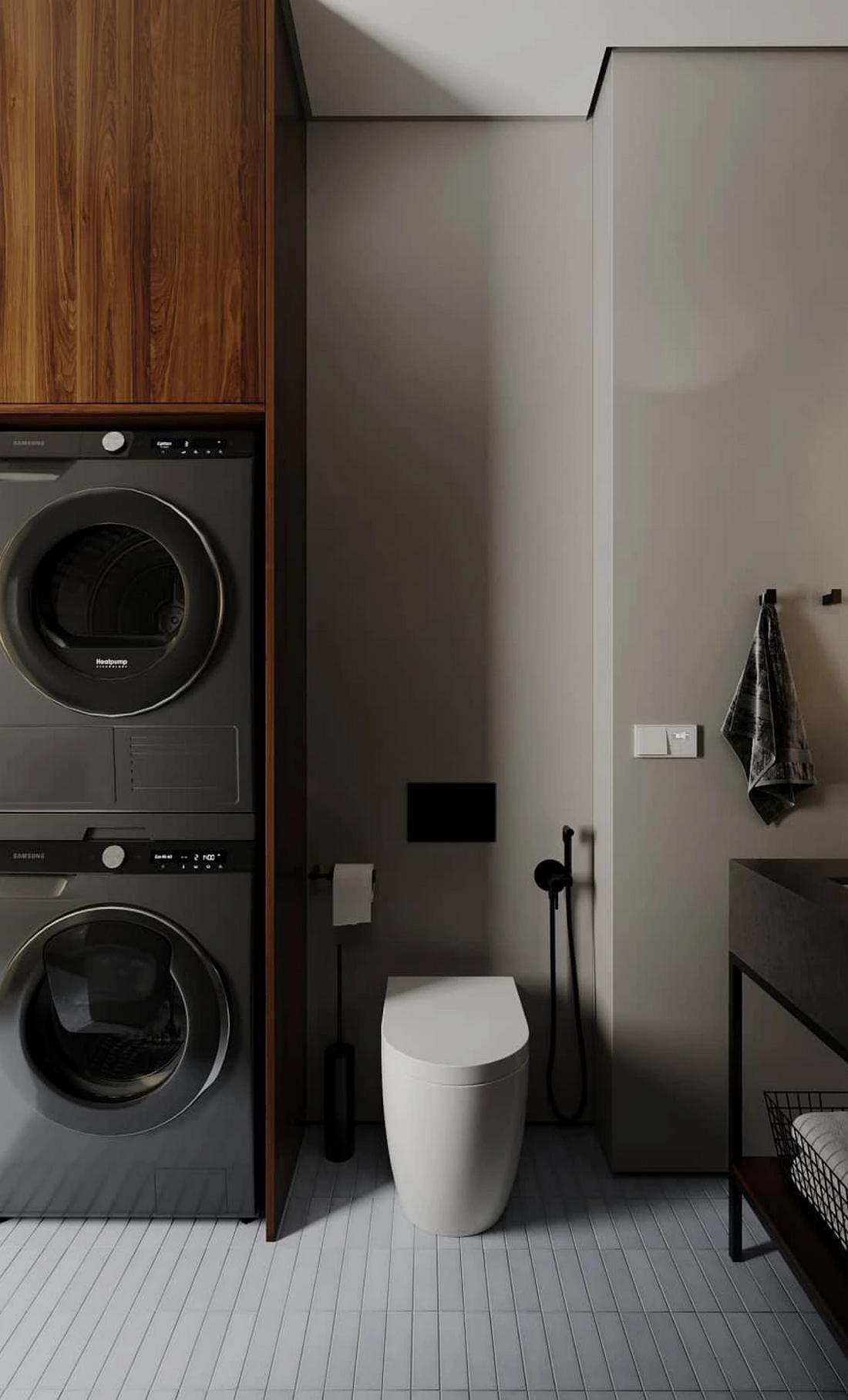 L' aménagement d'un studio de 33m2 au style mid-century moderne a été réalisé en structurant l’espace par la designer Nika Lebededeva du studio Lebedeva Project. Ce lieu conçu avec rationalité et intelligence vise l’efficacité quotidienne. Chaque mètre carré est utilisé avec précision, sans surcharge visuelle ni compromis sur le confort. L’esthétique mid-century repose ici sur un dialogue subtil entre velours vert kaki et noyer chaleureux. Le canapé vert profond structure le salon et sert de point d’ancrage visuel central.