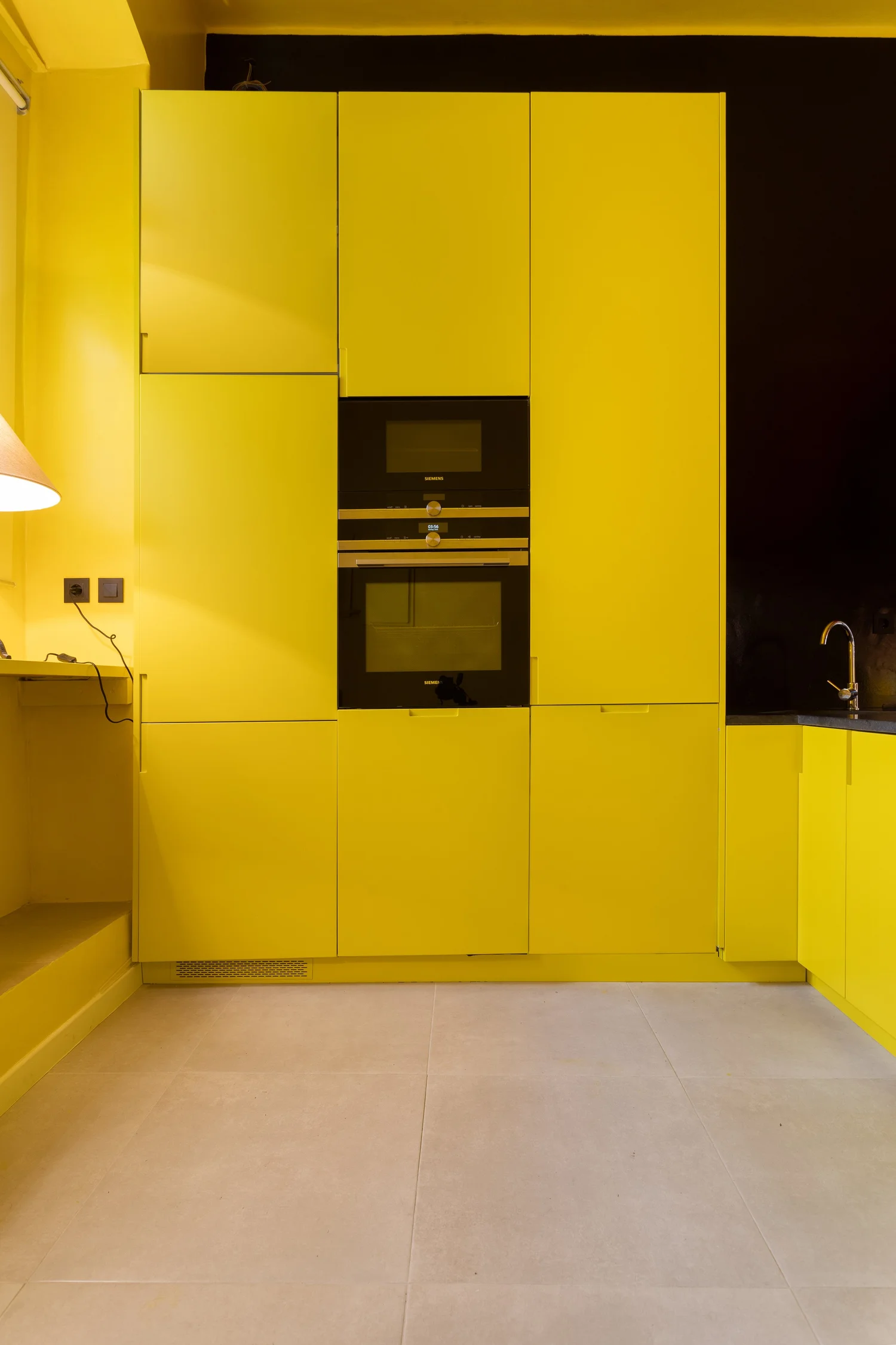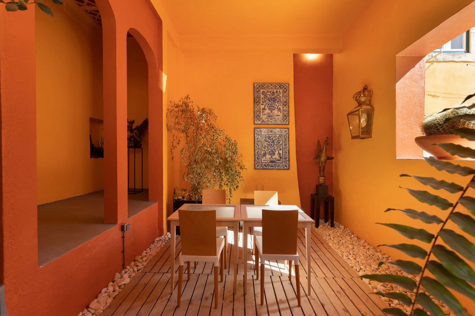 In old Lisbon, this contemporary apartment with warm colours has been reinvented with original features and modern furniture. It is located in an 18th-century building listed as a historic monument with a beautiful traditional façade. It is part of a collection of apartments to discover, each designed with a distinct decorative identity. Here, the original features interact with a contemporary renovation dominated by a deep yellow colour. Old azulejos, period mirrors and views of the Tagus River are all preserved assets in this remarkable place.