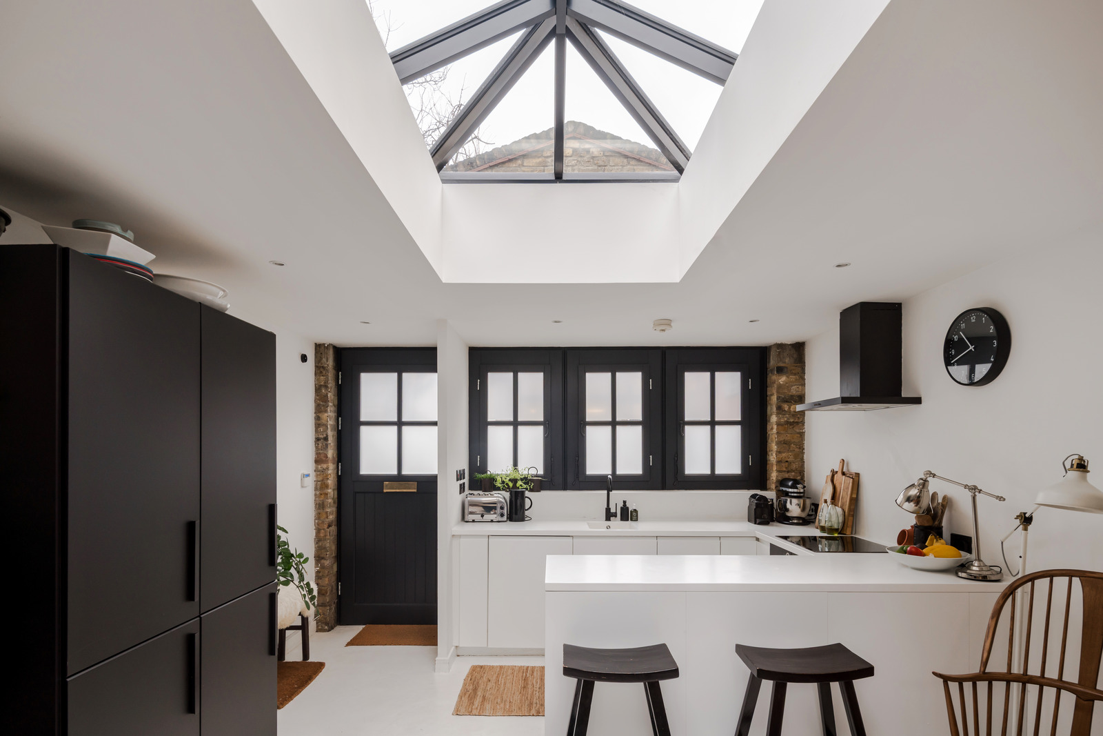 Cette petite maison de ville lumineuse avec cour dans un ancien entrepôt à Londres est en vente chez The Modern House