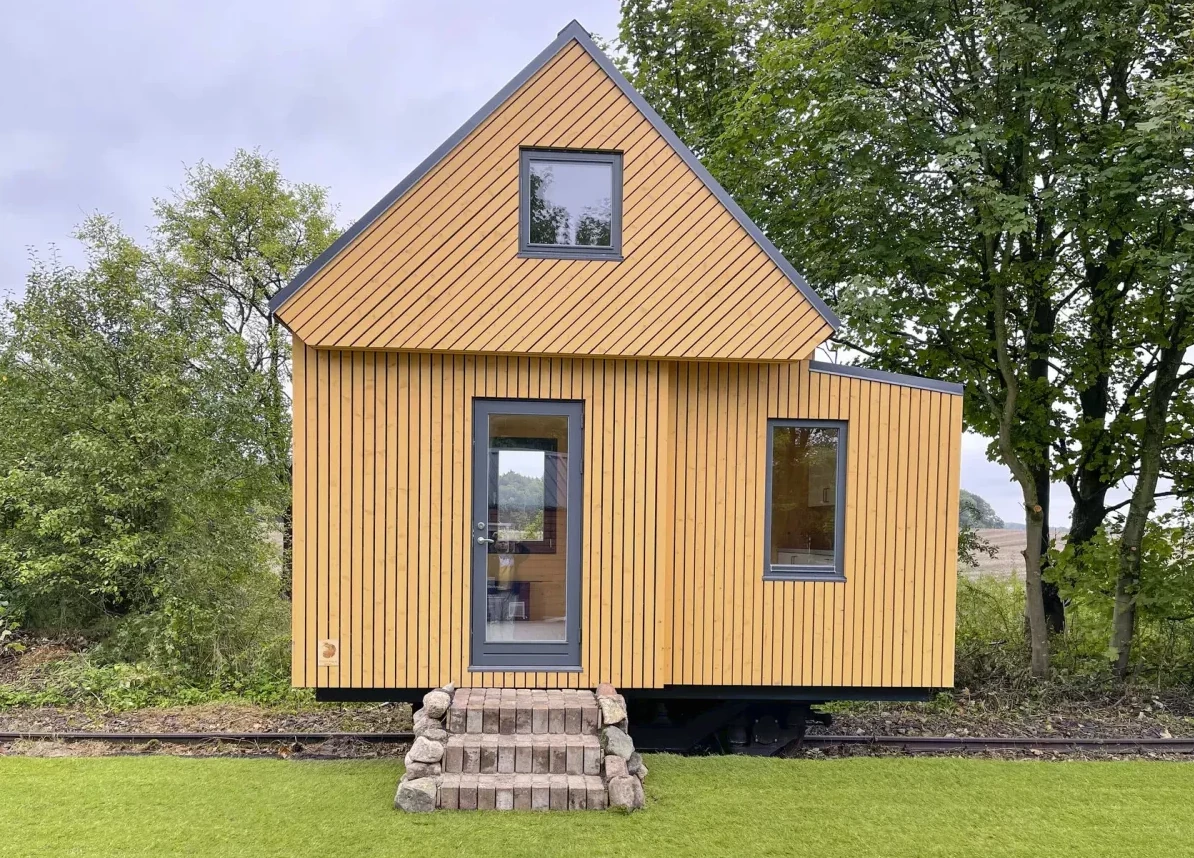 A 26m2 studio with a sleeping area separated by glass blocks