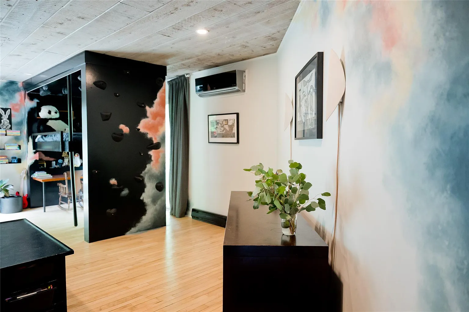 Designed in 1969 and then transformed by the Dean & Dahl studio, this contemporary wooden house with a bold design offers 250m² of inventive and spectacular space. Its architecture, with its large glass walls, opens onto unspoilt woodland. The living room, located upstairs, really gives the impression of floating among the treetops. Inside, the aesthetic surprises with its contemporary spirit and sometimes playful touches, such as in the bedrooms.