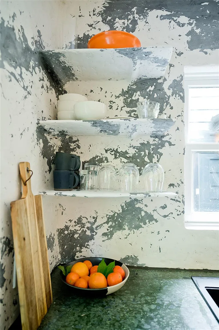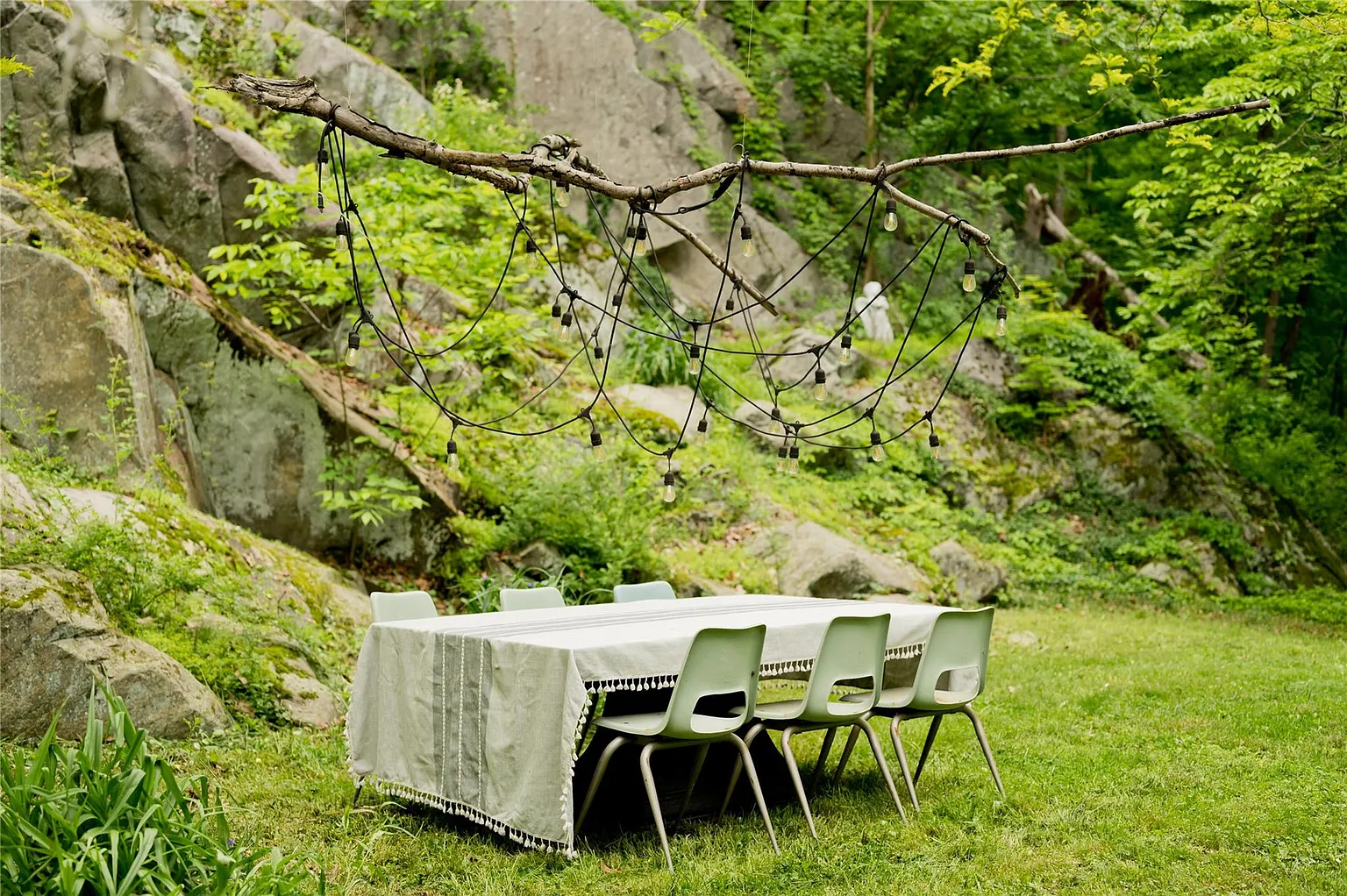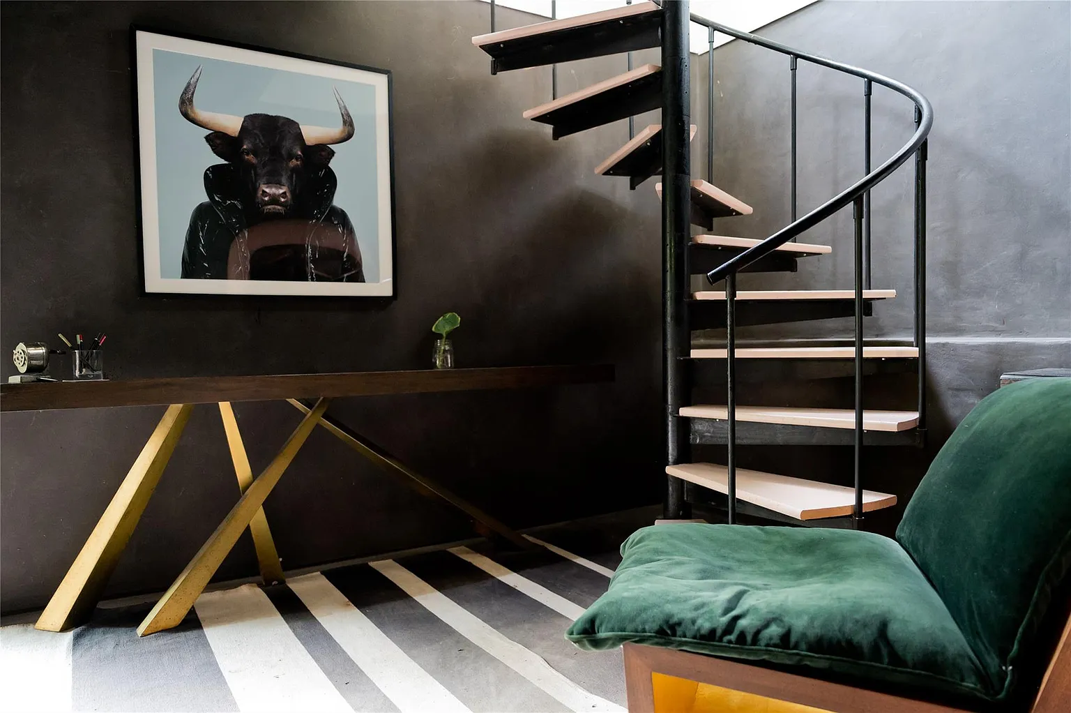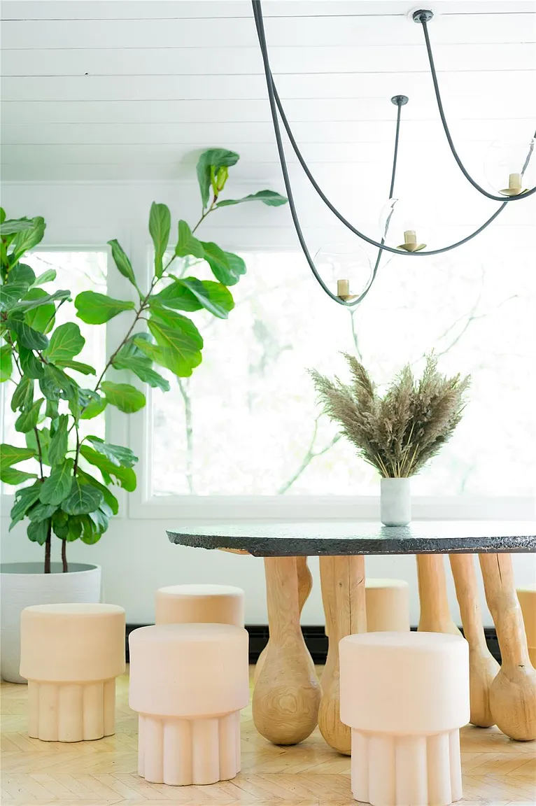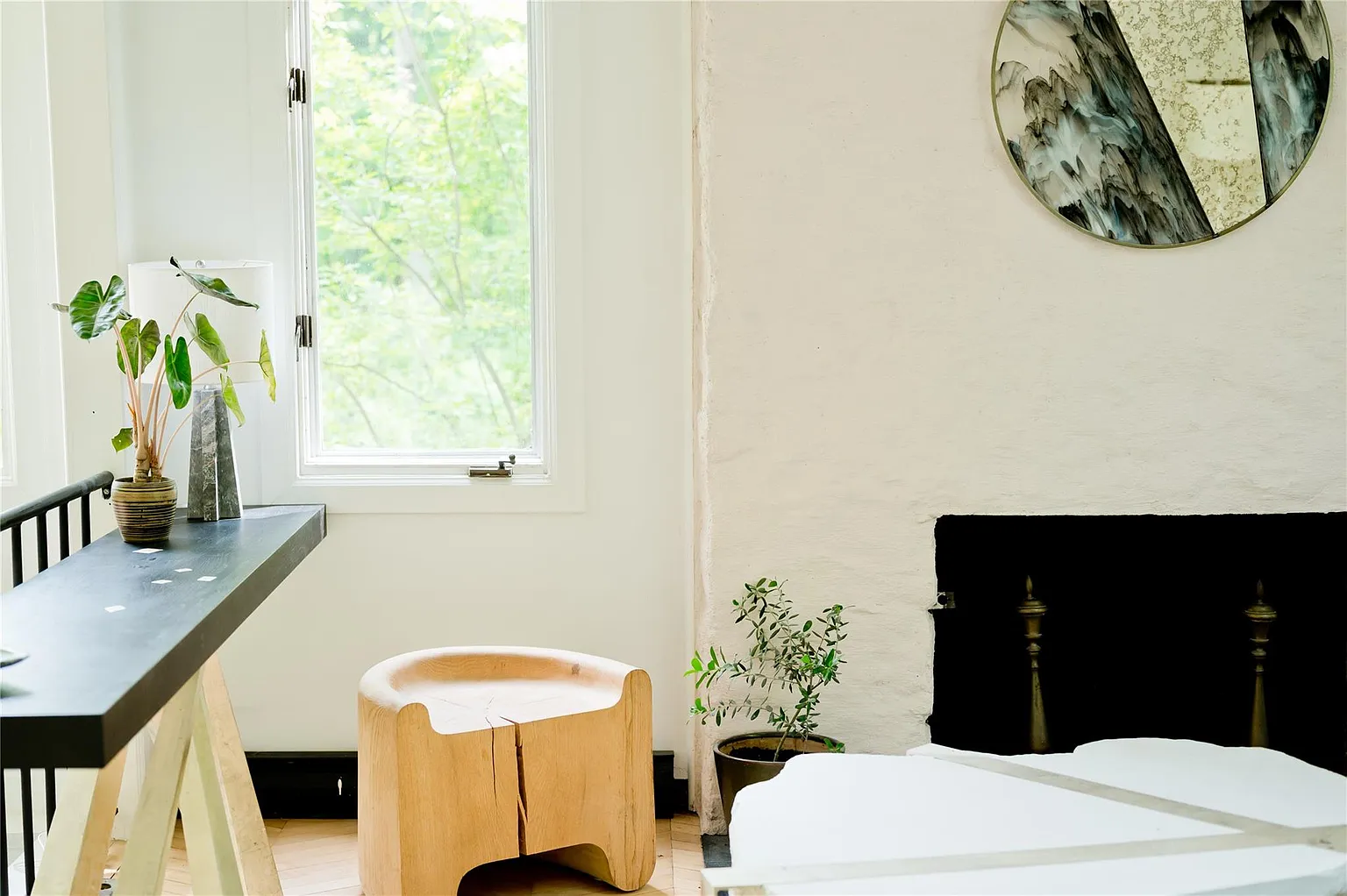 They feature original decorative choices, combining bold colours with deliberately neutral bases. This combination creates an unexpected visual balance, far removed from the usual codes of forest homes. Here, contemporary design interacts unfiltered with unspoilt and intensely present nature. Outside, moss-covered rocks and winding stone paths immerse you in nature. The property opens directly onto the trails leading to Granite Mountain Reserve. Photo: David Coppola