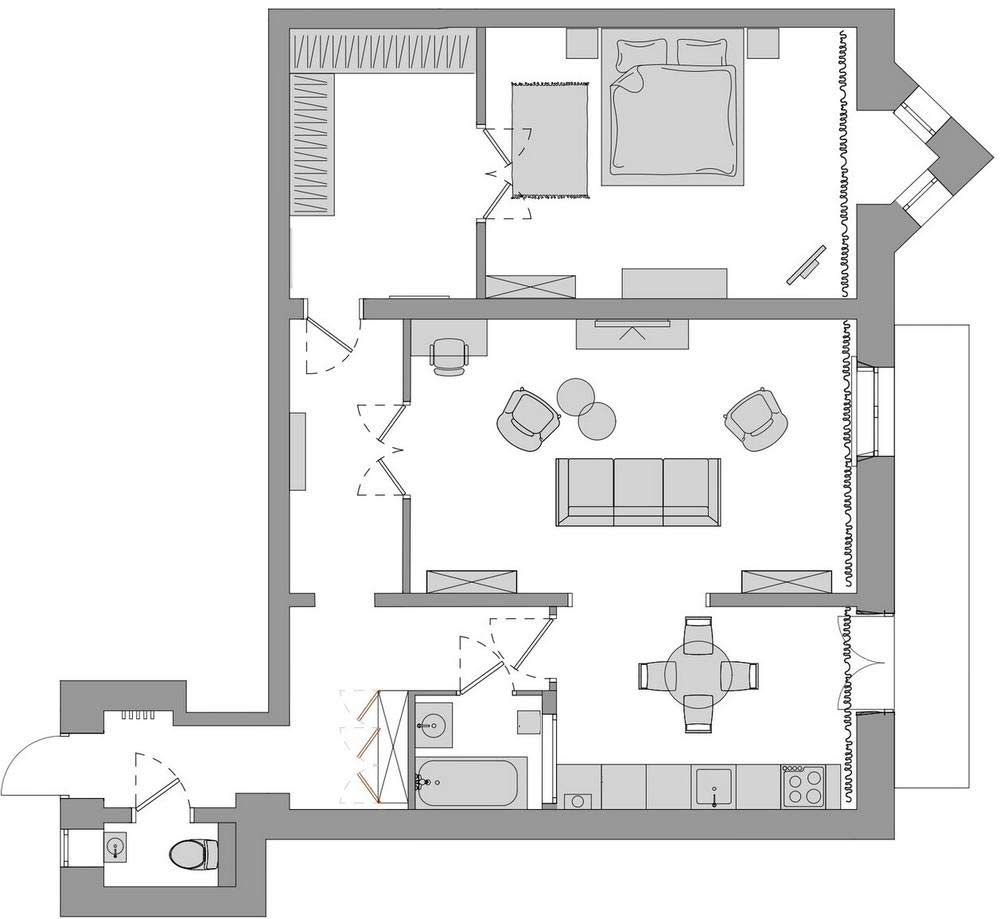 L'architecte d'intérieur Anastasia Zarkua de Zarkua Design a conçu des espaces raffinés pour un appartement ancien de deux-pièces dans un ancien immeuble de 1905. Cet appartement de 78m2 au style vintage revisite le rétro scandinave avec des couleurs douces. Le mobilier rénové et une technologie discrète de notre époque ont également été intégrés dans l'appartement. Le projet respecte l'histoire de l'immeuble ancien où il se trouve tout en gagnant fonctionnalité contemporaine. La propriétaire souhaitait un remodelage complet intégrant des innovations pratiques sans sacrifier une ambiance chaleureuse et élégante.