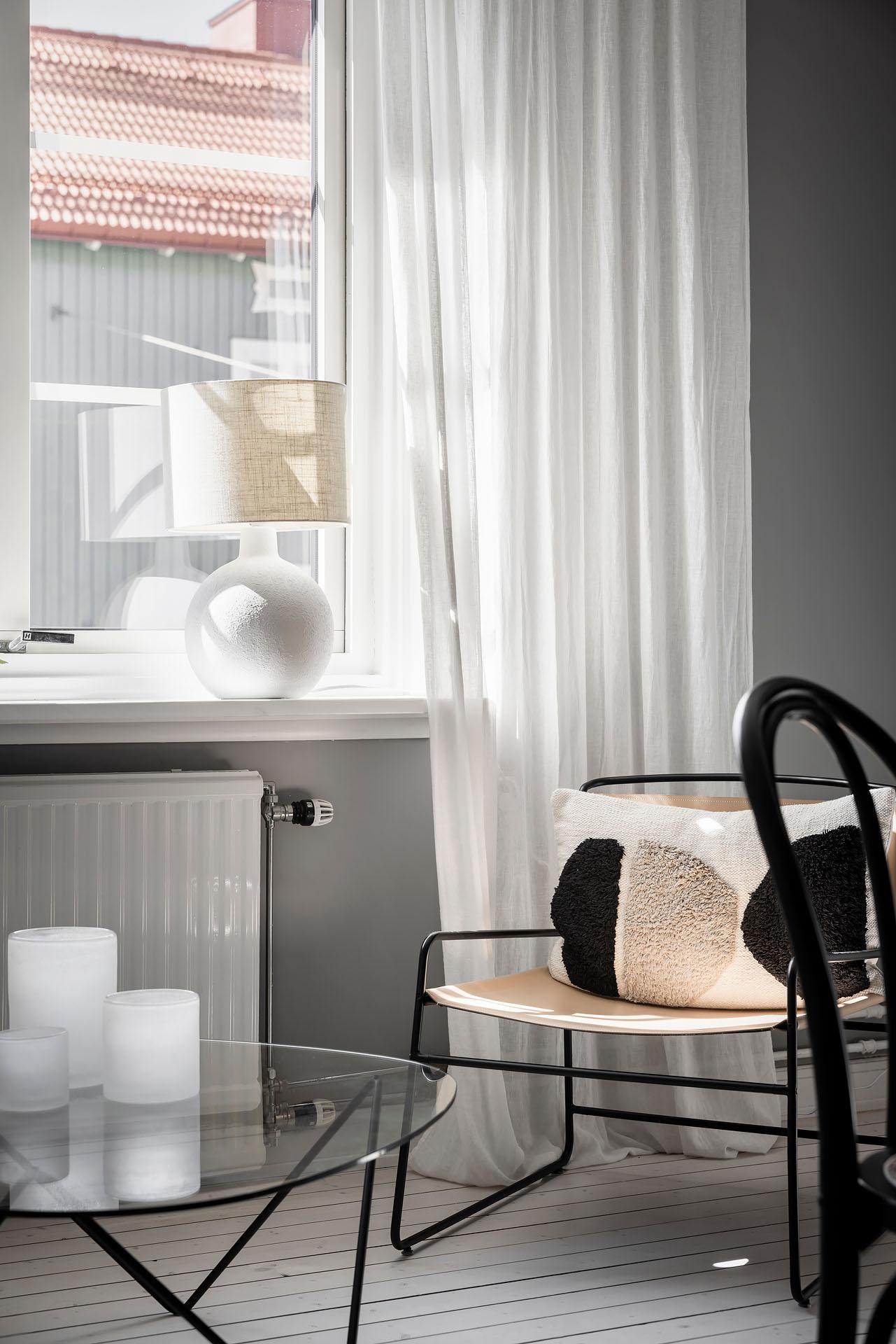 This 40m2 old one-bedroom apartment with monochrome designer décor is for sale at Alvhem