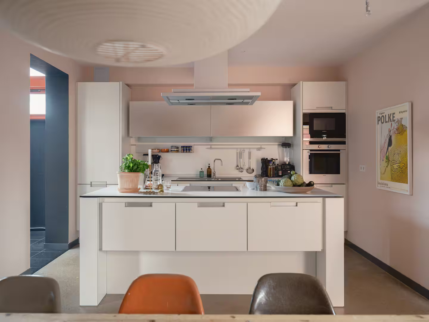 Conçue à l'origine dans le cadre du mouvement suédois pour le logement durable, cette maison de ville moderniste Packhus utilise une typologie unique. Elle se trouve dans le quartier Bo01 de Malmö. Sa structure joue avec deux volumes verticaux reliés par des espaces communs. La rénovation menée en 2021 a transformé l’esprit initial sans le trahir, en arrondissant les lignes et en réchauffant l’ensemble. Les espaces intérieurs alternent pleins et vides, créant une circulation naturelle et une sensation d’intimité. Les murs bleus du salon font ressortir la couleur des confortables canapés Togo.