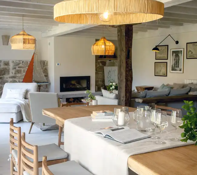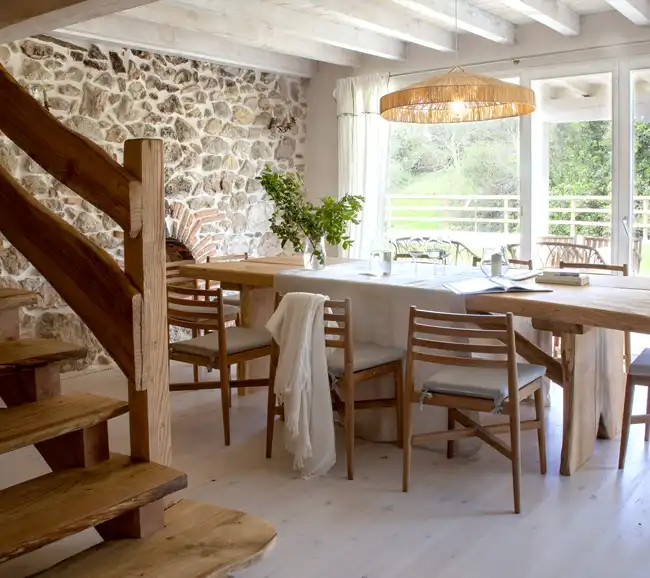 This house, which is over 300 years old, has stood the test of time and has now been given a new lease of life thanks to contemporary improvements. No recent construction can rival the charm of the old houses of northern Spain. In Lamadrid, we discover this ancient residence. Named Bonita del Norte (beauty of the north), it was acquired in 2022 by the Javaloyes family, founders of Wishome. Their ambition was clear: to create a welcoming holiday home without betraying the local architecture. The stone walls needed complete renovation, while preserving the soul of the place. This project found its balance thanks to the intervention of designer Dafne Vijande, who was attentive to the harmony between the different eras.