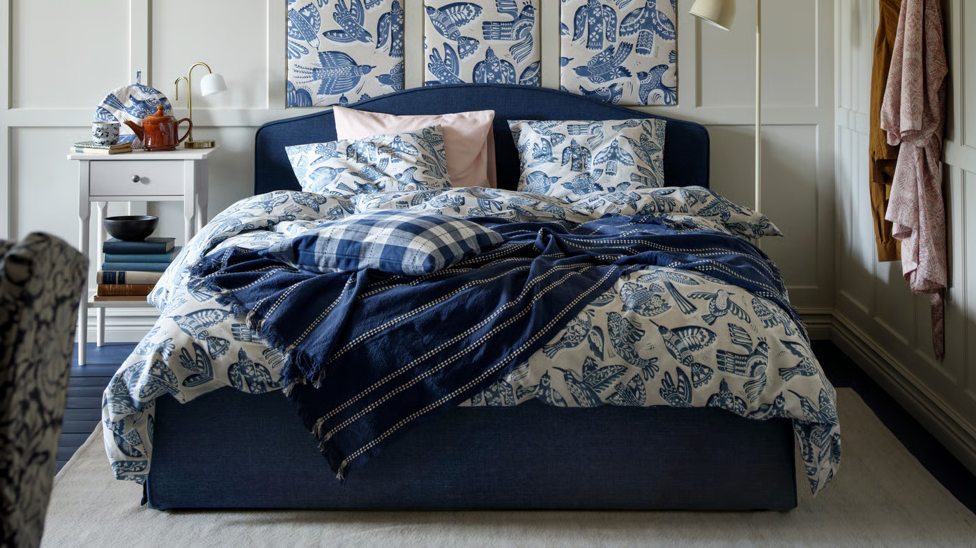 Le bleu marine clôt la palette 2026. Longtemps boudé, il trouve désormais sa place dans la chambre. Plus léger que le noir, il crée une ambiance intime et protectrice. Pour un rendu équilibré, il est souvent associé à des matières naturelles et à un éclairage chaud.