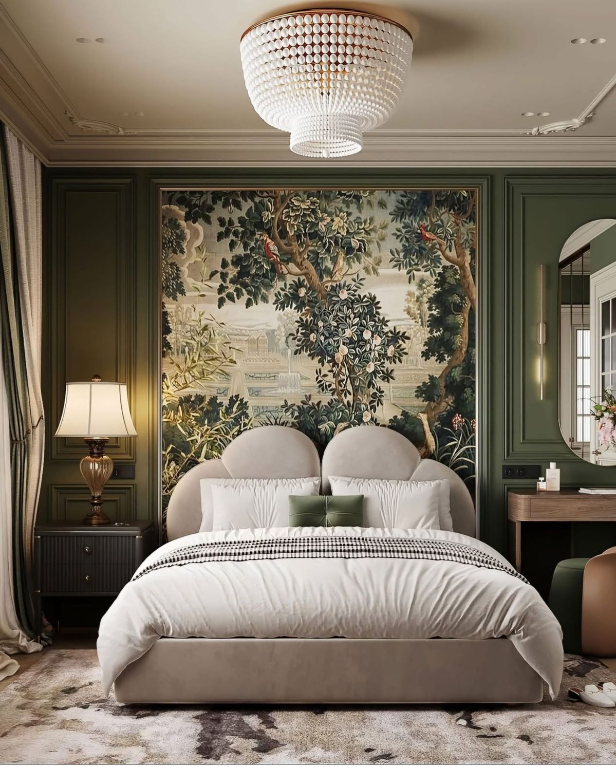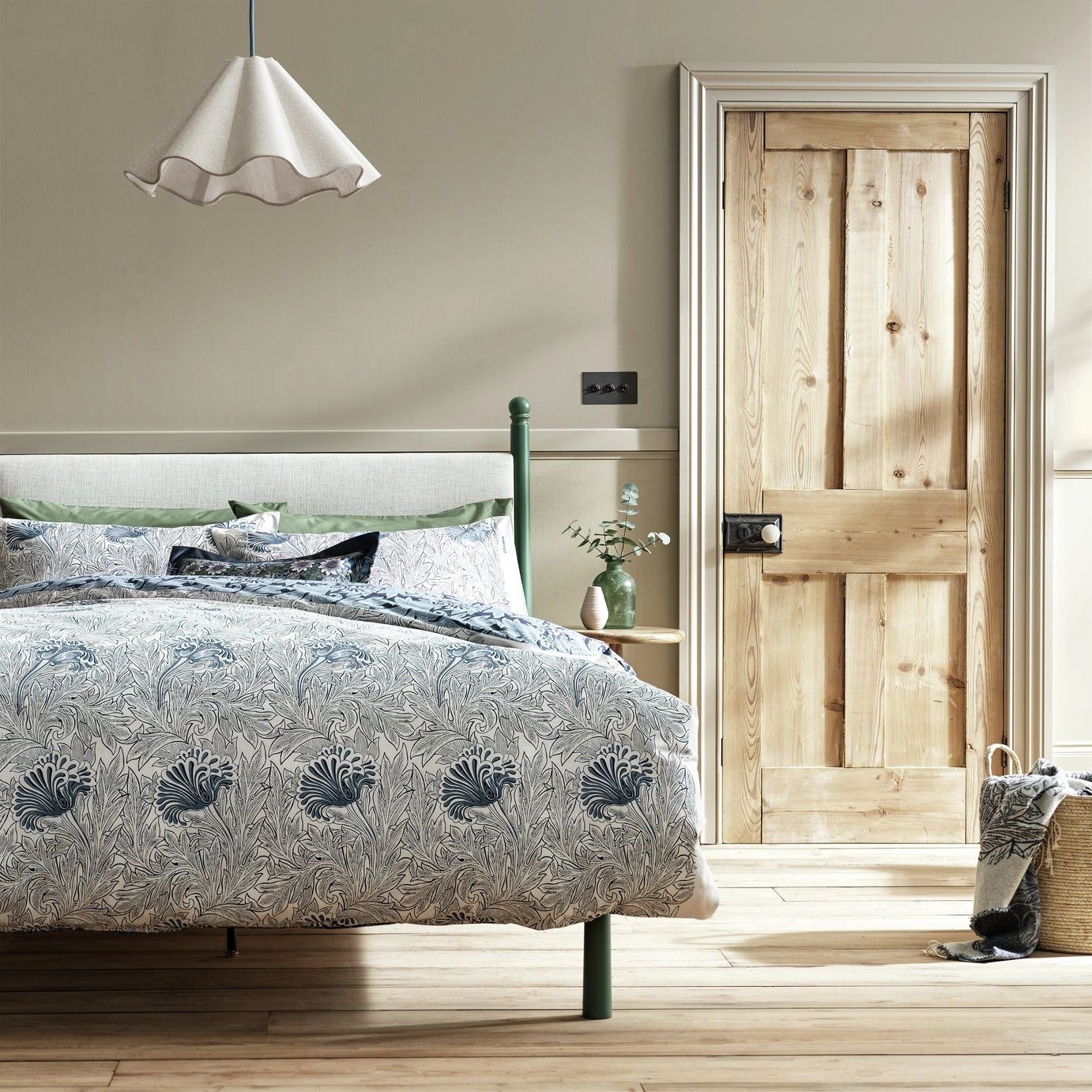 Le vert reste une valeur solide pour la chambre. Sa présence rassure, car elle évoque le vivant et le rythme naturel. En 2026, les verts privilégiés sont discrets. La sauge, l’olive ou la mousse fonctionnent particulièrement bien sur les murs. Ces nuances créent un climat propice au sommeil, surtout lorsqu’elles sont associées à des bois simples et des textiles naturels.