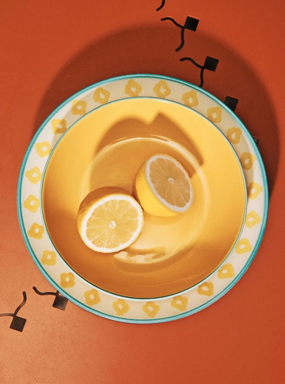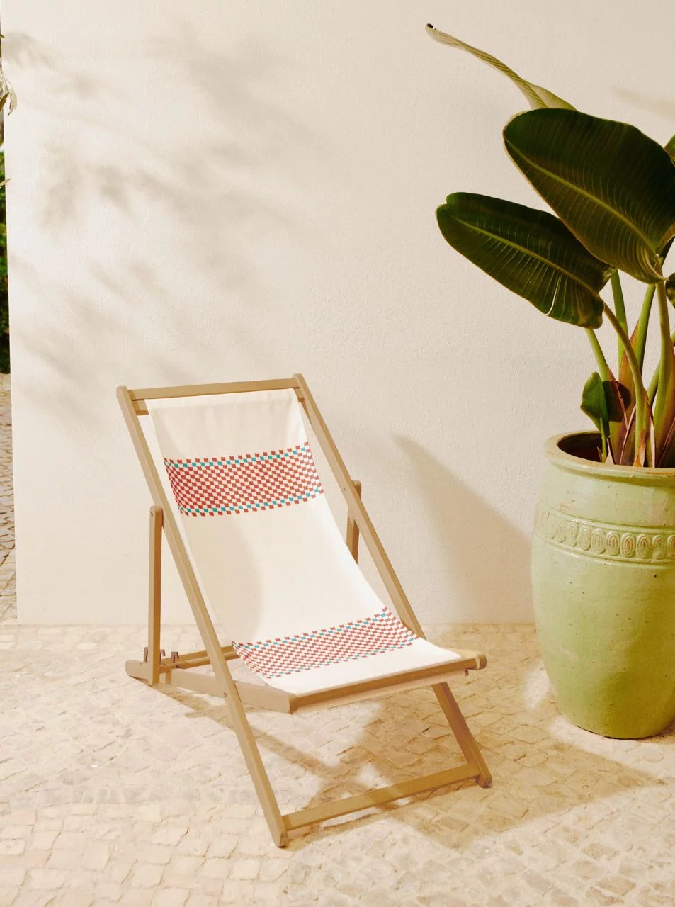 La collection Tamsa se compose d’une trentaine de pièces qui s’installent aussi bien dedans que dehors. On remarque notamment le bain de soleil en acier, idéal pour chiller au jardin ou sur une terrasse. Les ensembles de table et de fauteuils adoptent des formes arrondies. Le parasol Mira joue la carte graphique avec un côté uni et un côté à carreaux. La vaisselle apporte une touche ensoleillée à la table avec des motifs discrets. Coussins, paniers en jonc de mer, vases et bouts de canapé complètent l’ensemble de la décoration. Chaque objet est pensé pour durer au-delà d’une saison.