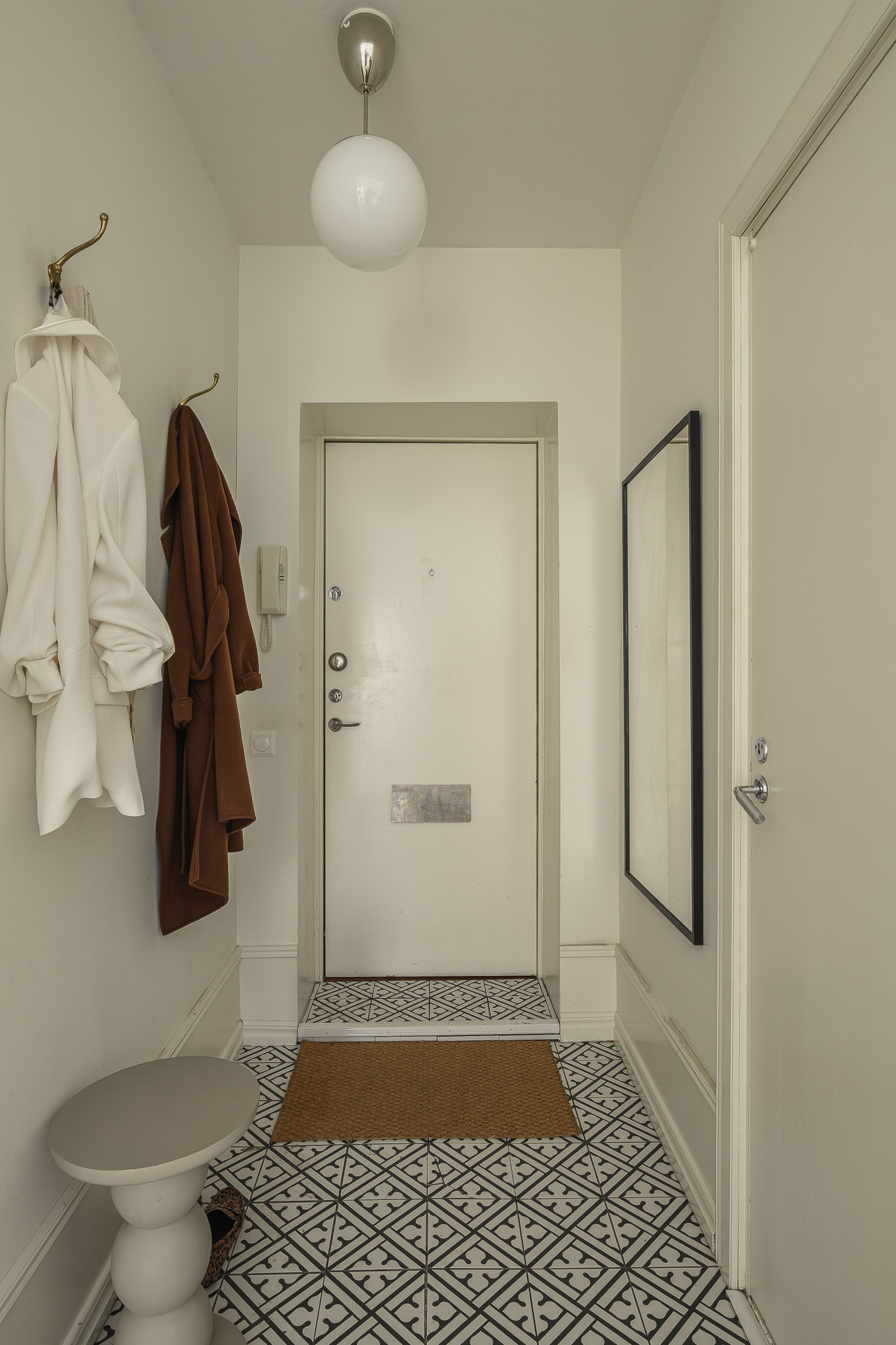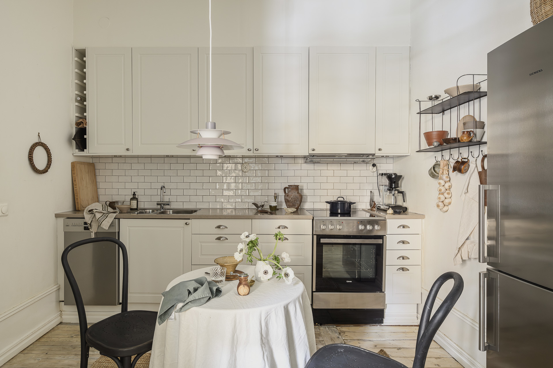 Dans un immeuble datant de 1904, cet appartement ancien de 52m2 marie patrimoine et aménagements actuels avec intelligence. Situé à Göteborg, cet appartement de deux-pièces prend place dans un immeuble ancien soigneusement conservé. Les moulures hautes, le parquet ancien et les rosaces donnent immédiatement le ton dès l’entrée. Le plan a été repensé pour offrir des volumes fluides malgré une surface restreinte. Les fenêtres bien orientées lui offrent une clarté qui renforce la perception d’espace. Le salon possède une large fenêtre placée sur le petit côté. Les éléments anciens dialoguent avec la décoration scandinave actuelle. L’ensemble est chaleureux, fonctionnel et facile à vivre au quotidien. Autrefois un grand studio, la cuisine a été scindée pour créer une petite chambre, ce qui en fait un appartement au plan atypique.