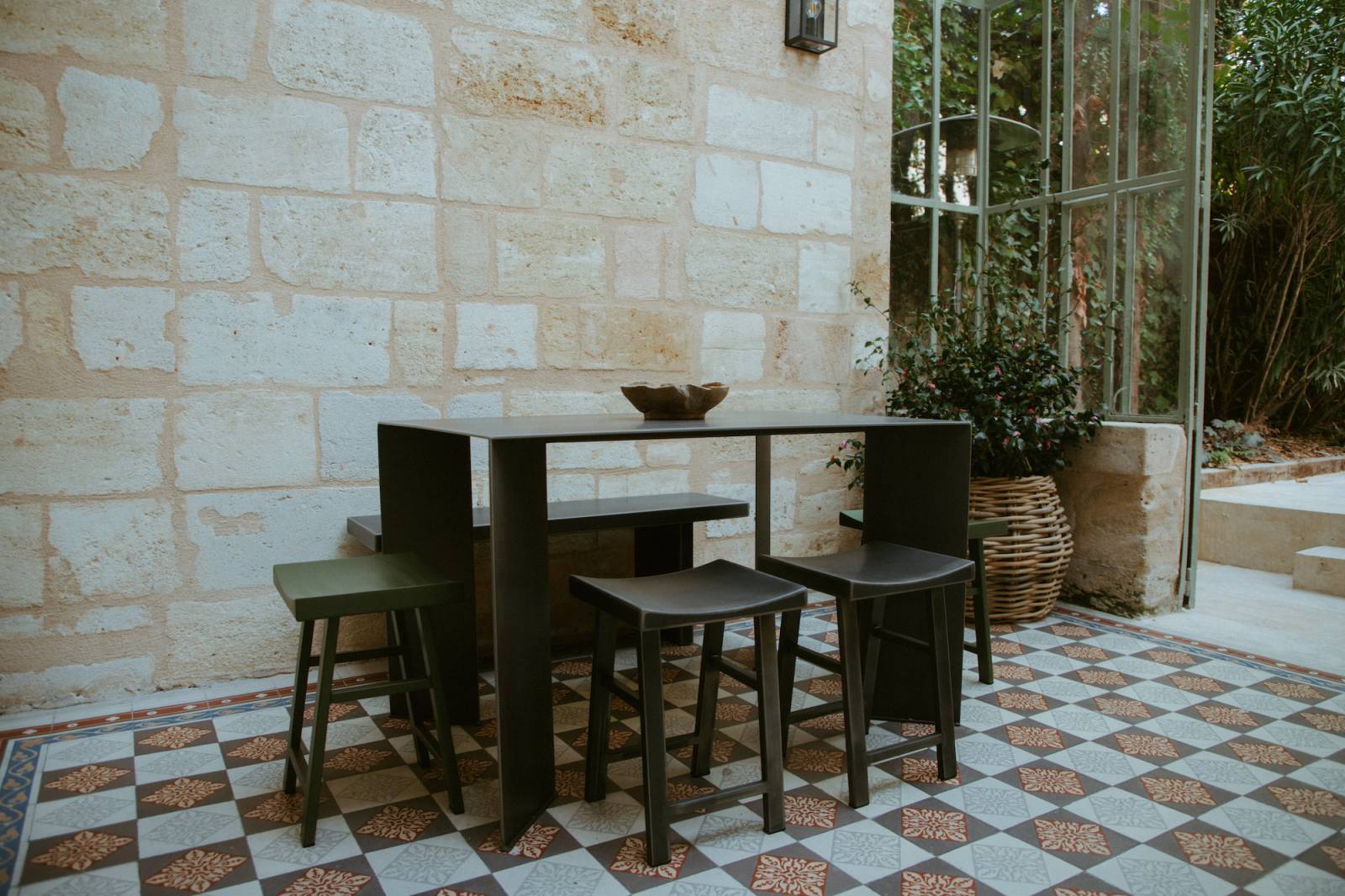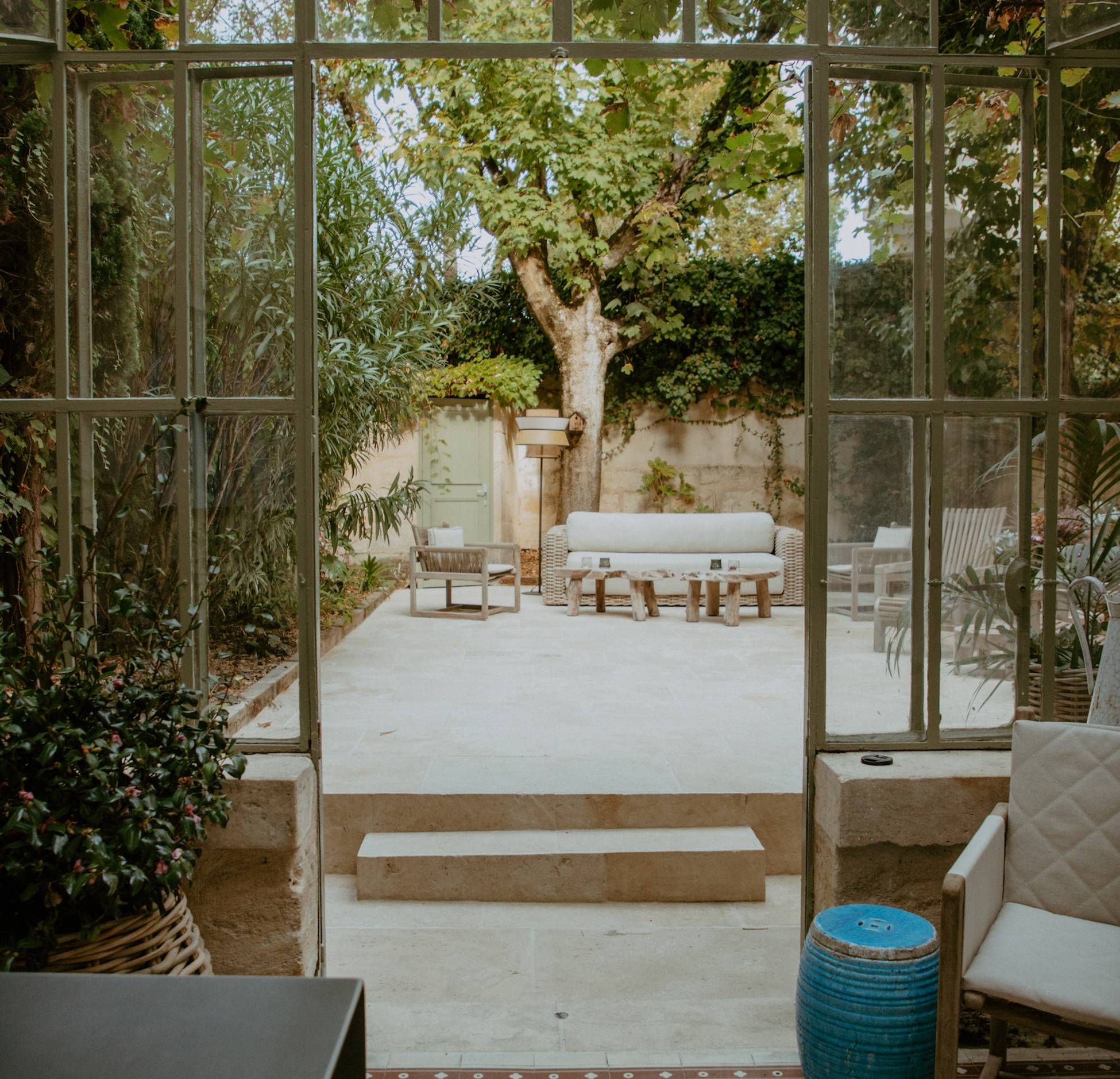 In Bordeaux, in one of its prettiest neighbourhoods close to the historic centre, Maison Mandel is a classic and elegant house with a garden. Welcoming and inspiring, it is decorated in a contemporary style that blends perfectly with its old stone walls. It features comfortable, modern sofas as well as antique objects. On the ground floor, the 40m2 living room is the central gathering place. Its antique fireplace, parquet flooring and carefully renovated mouldings give it the charm of houses with a history. A large orangery-style room with antique tiling overlooks the garden.