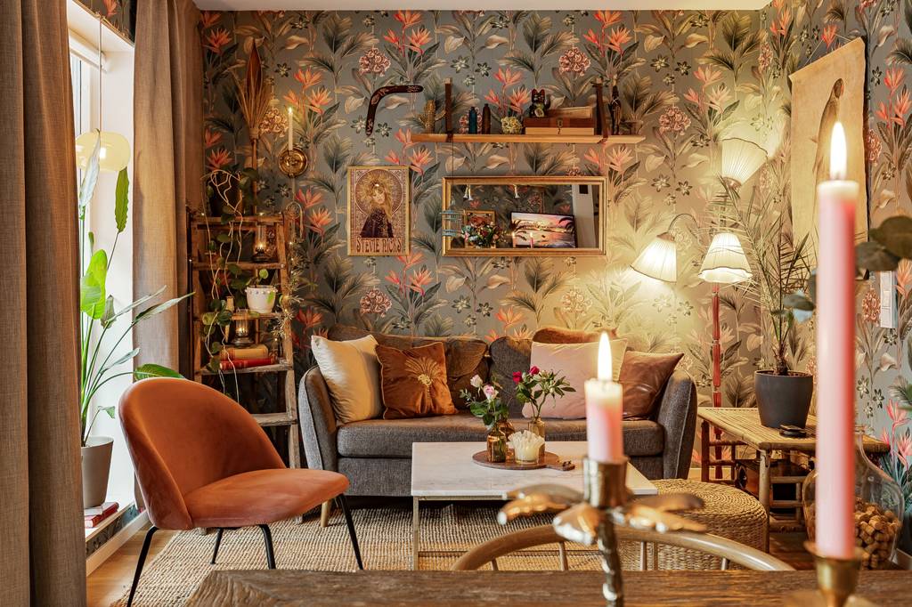 A 140m2 terraced house with maximalist décor thanks to wallpaper