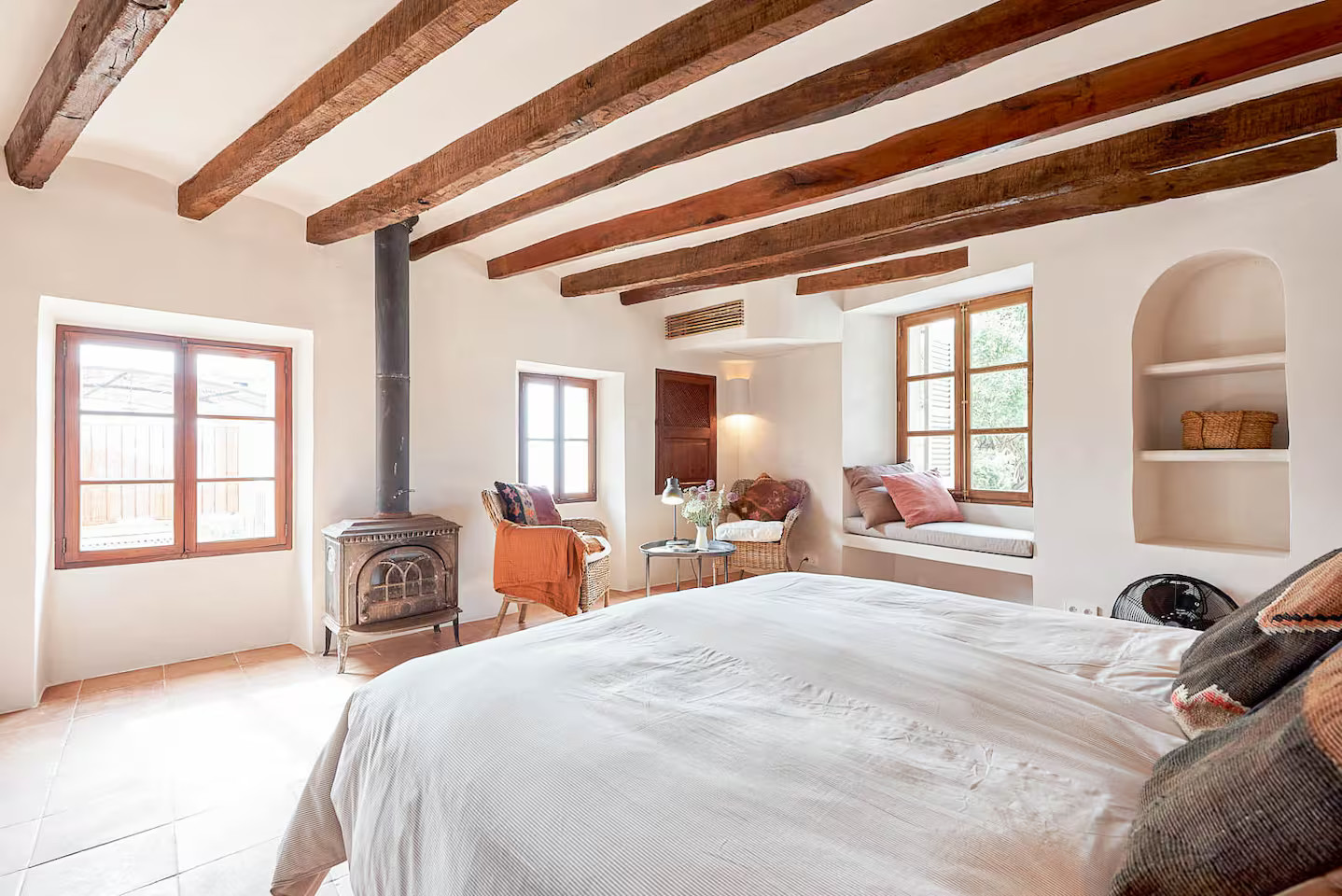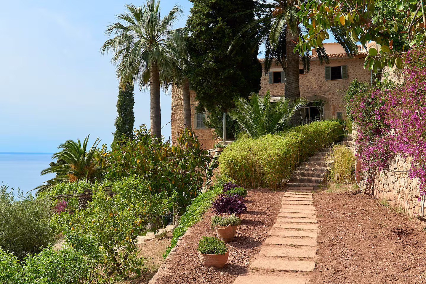 This stone house facing the Mediterranean Sea in Majorca is available to rent through Airbnb
