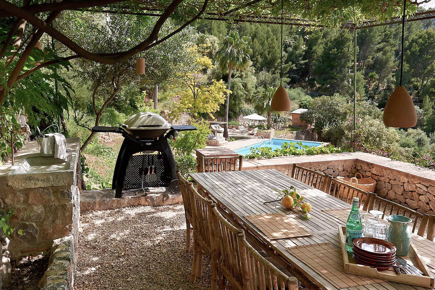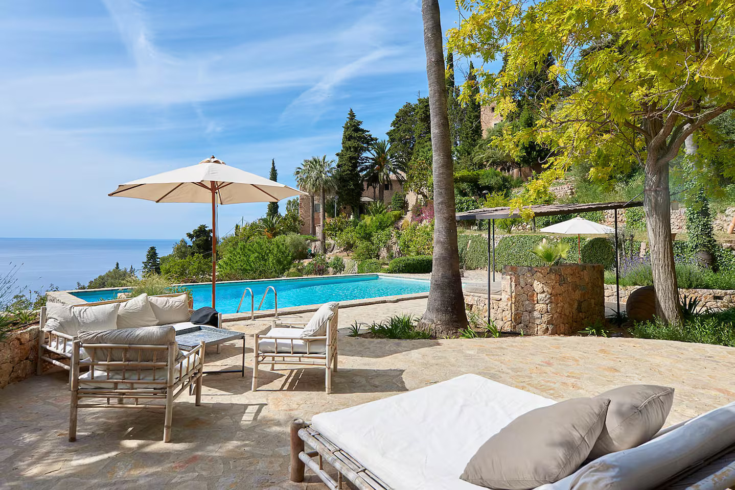 À l’extérieur, les arbres et les plantes habillent le jardin de verdure. La piscine spacieuse et la pergola couverte de vigne invitent à vivre à l'extérieur. Les soirées se prolongent autour de la table de jardin, entourée d’une végétation généreuse. La crique de Cala Deià Cove est proche pour la baignade, même si la piscine privée et sa vue, vous invitent à rester sur place. Enfin, les sentiers de la Tramuntana attendent enfin les amateurs de marches dans la nature sauvage environnante.