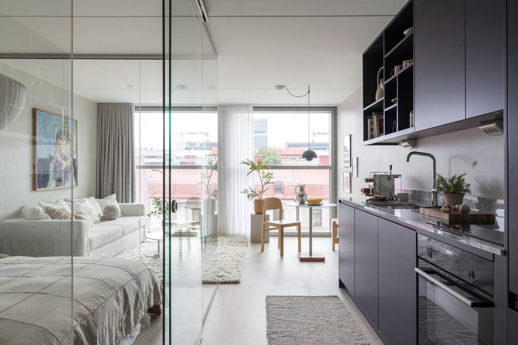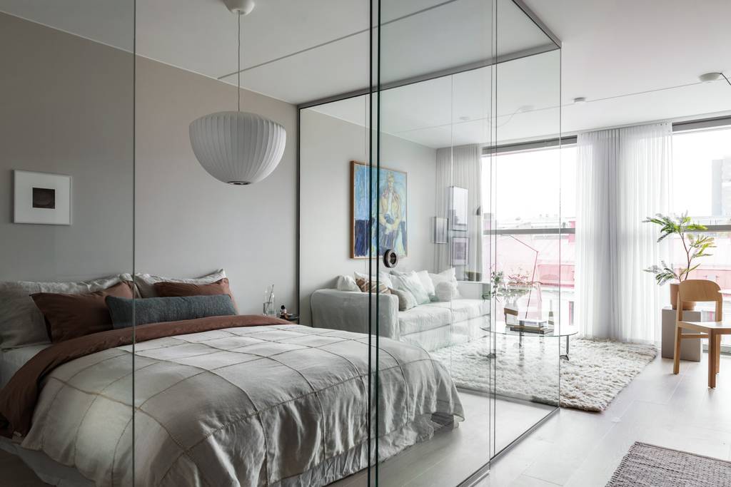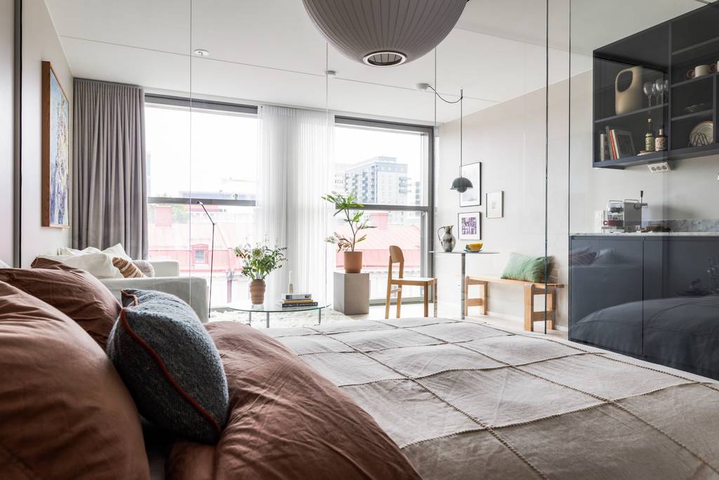 This 34m2 studio with a glass-walled bedroom is for sale on the Hemnet website