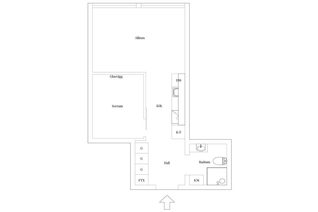Ce studio de 34m2 avec une chambre vitrée est en vente sur le site Hemnet