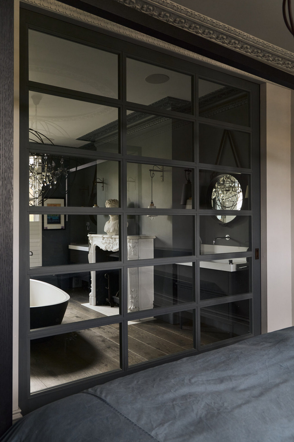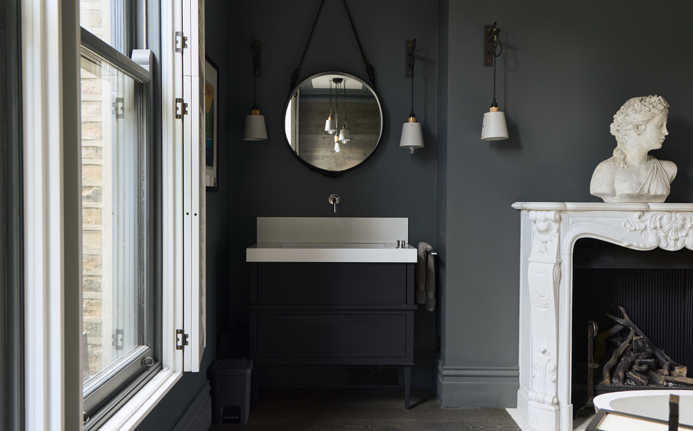 At the end of a row in London Fields, this renovated Victorian house in London has found a new lease of life. The project, carried out by WPG Architects with the Casa Botelho studio, has been masterfully executed. Its exposed brickwork is combined with a carefully chosen palette of minerals and wood. The raised ground floor houses a living space that combines the lounge, dining room and kitchen. Its restored marble fireplaces are magnificent reminders of the age of the house. They naturally attract the eye, as do the light fixtures by John Cullen and Buster + Punch. Subtly patinated Belgian chandeliers from the 1930s are reflected in Abigail Hearn mirrors.