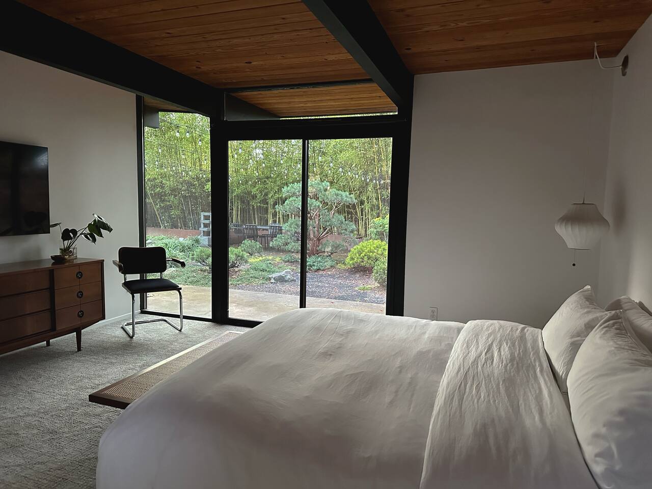 A mid-century house in Oregon opening onto a Japanese garden