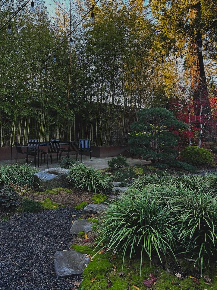 Une maison mid-century en Oregon ouverte sur un jardin japonais