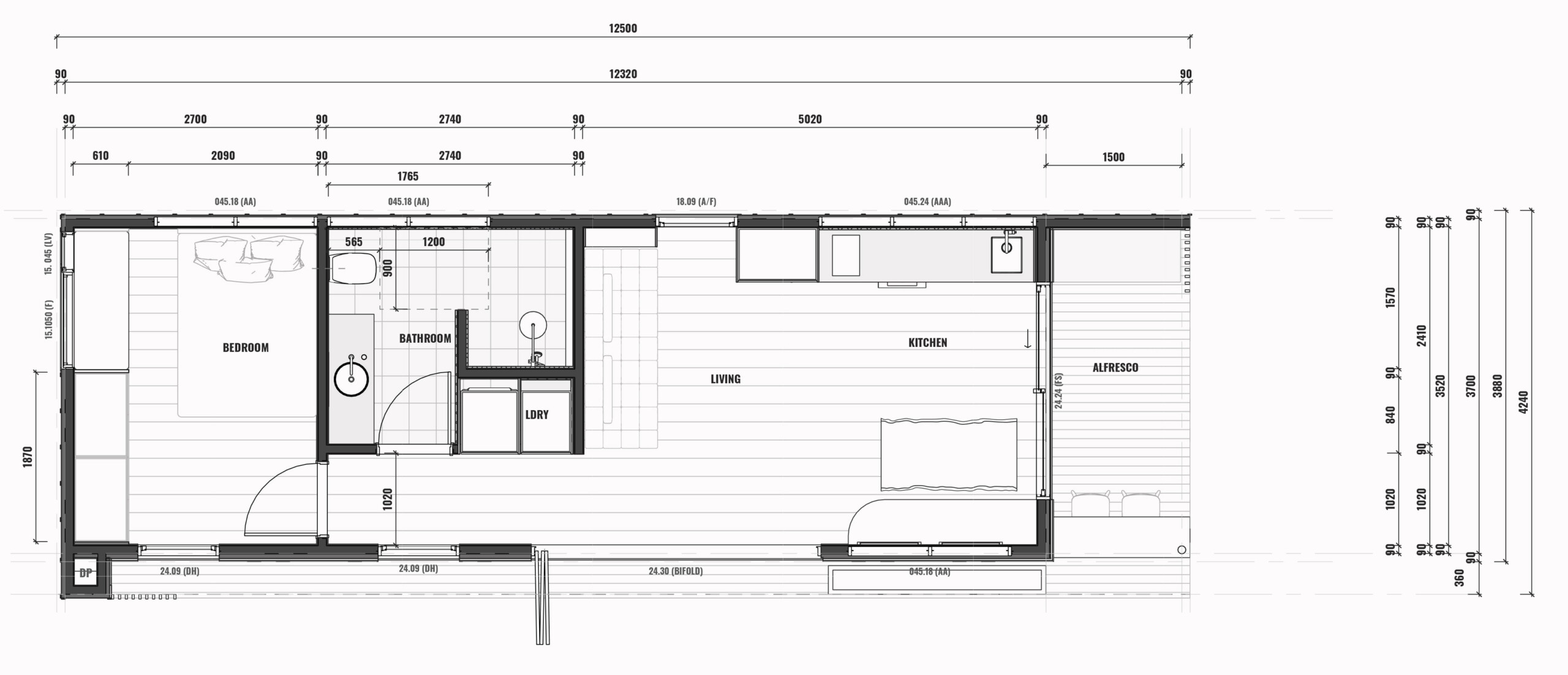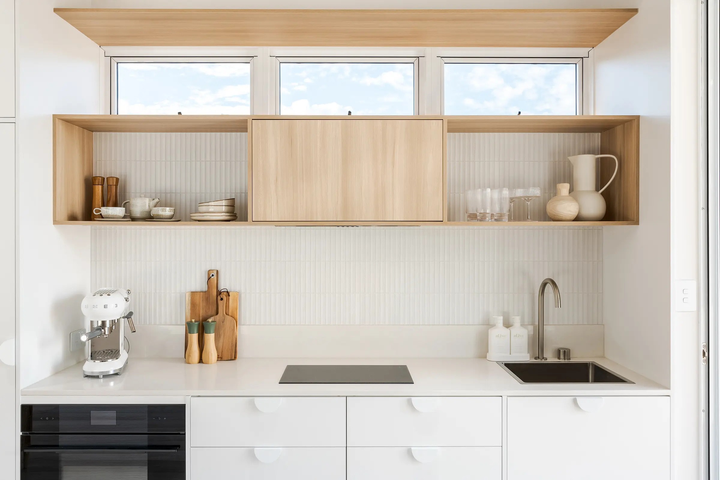 The small 56m2 Whitsunday modular house by Arcopod proves that a small format can offer real comfort and sophisticated design. It features a white silhouette with clean, contemporary lines. Its integrated terrace provides a pleasant, sheltered outdoor space. Sliding glass doors extend the living room outwards and let in natural light. The overhanging roof protects the terrace and allows you to enjoy the view even in changeable weather. Measuring 4.5 metres wide by 12.5 metres long, this 56m2 model offers a credible alternative to the classic house. Designed by Arcopod, a modular specialist, it is aimed at couples or single people looking for a well-organised space.