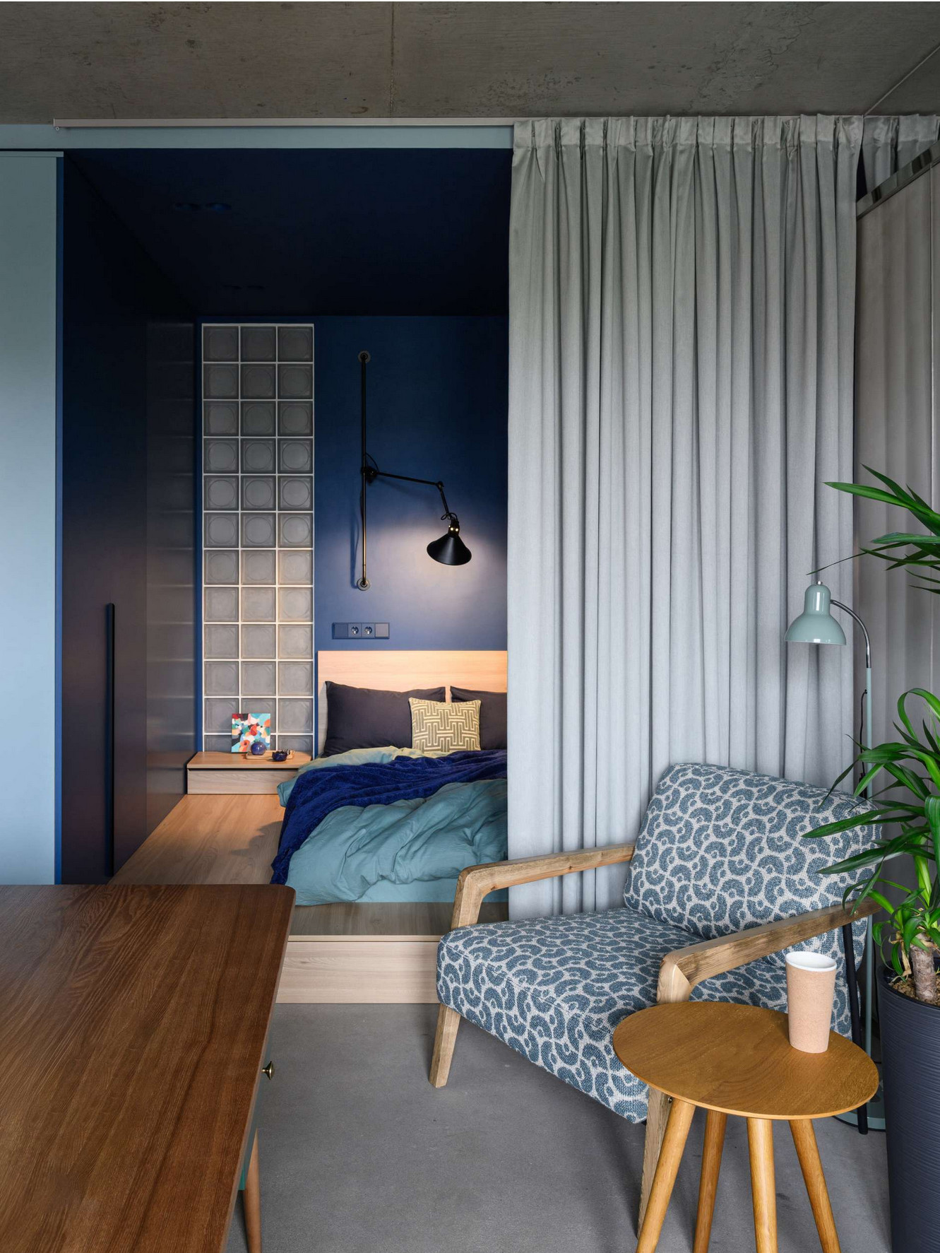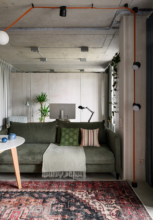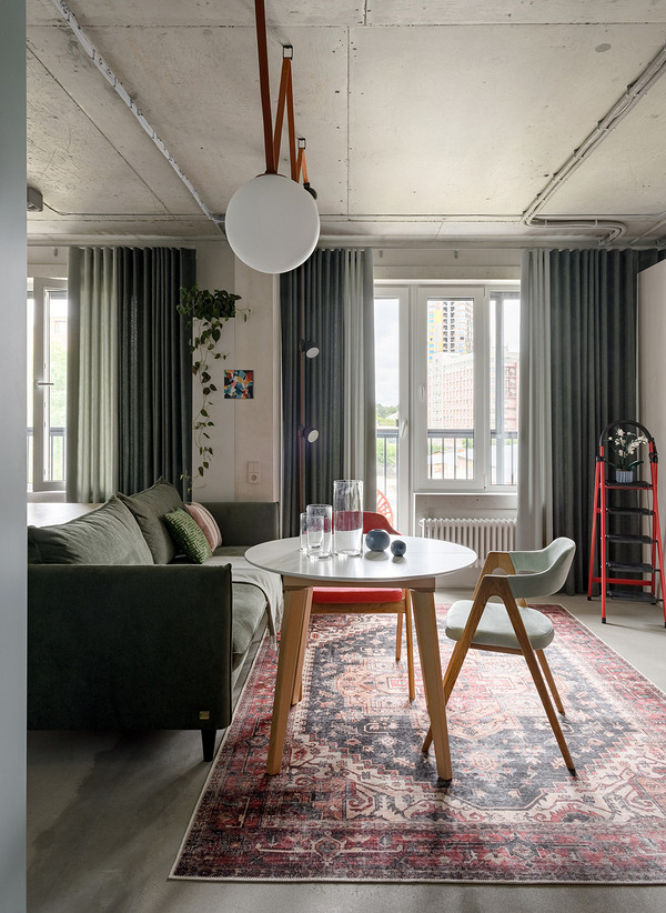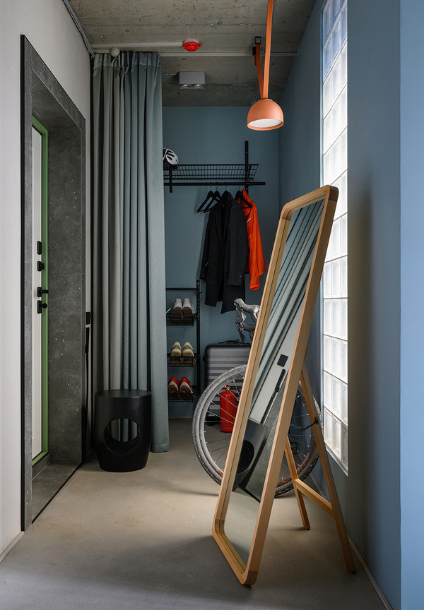 Furnishing a 55m2 flat with raw concrete and glass blocks