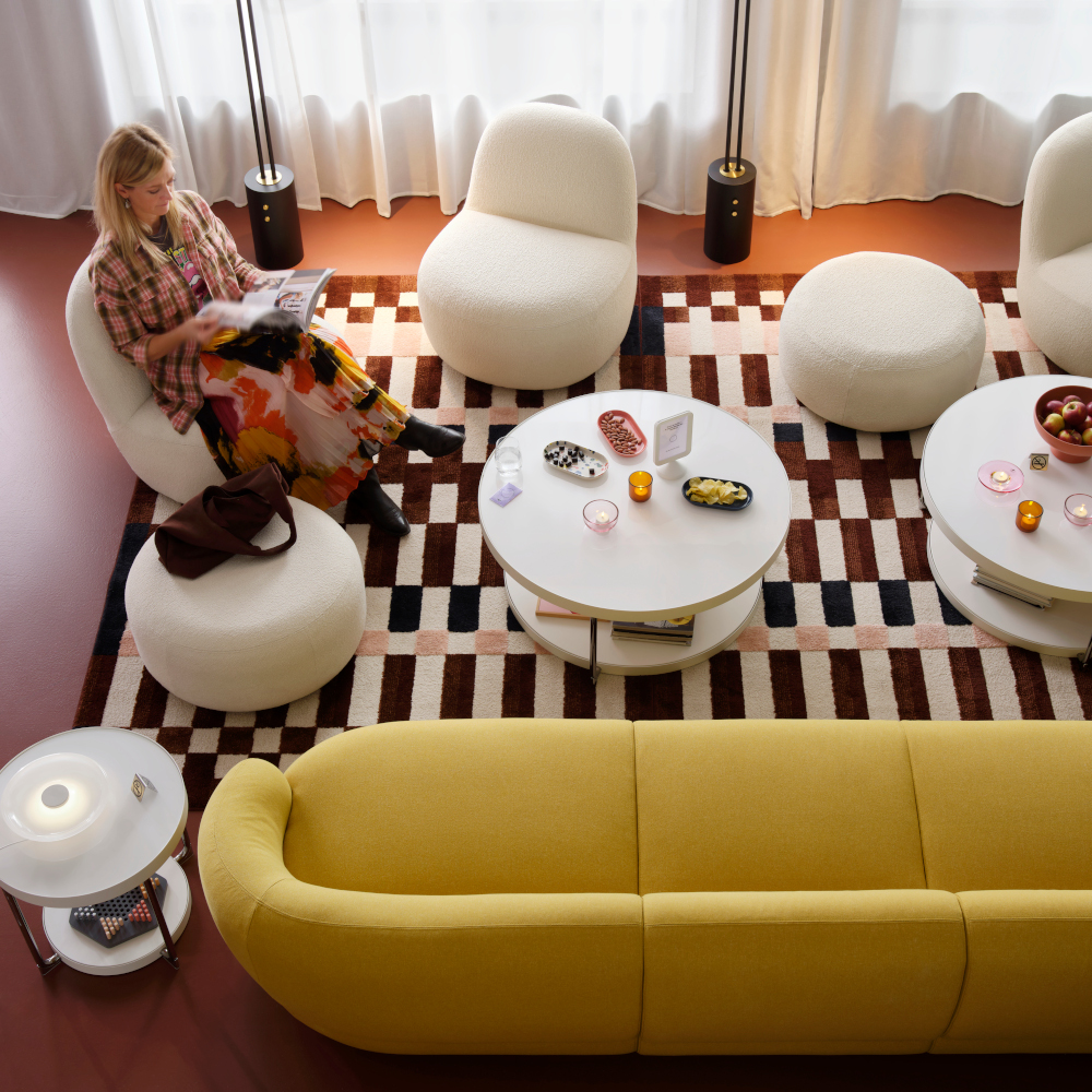 Le tapis MARKBLÅMME attire l’œil dès l’entrée dans la pièce. Son motif joue avec les reliefs et les contrastes de couleurs. Le rose et le beige rencontrent le marron dans un équilibre subtil. Les zones à poils courts soulignent les teintes plus intenses. Selon Paulin Machado, la variation de niveaux accentue la profondeur visuelle et le toucher. Le sol devient presque une œuvre graphique, vivante et expressive. Ce tapis ne se contente pas d’habiller la pièce. Il structure l’espace et donne le ton dès le premier regard.