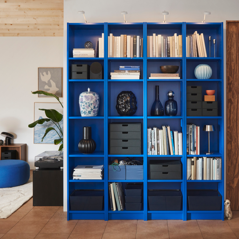 La collection LILLESÄTER introduit des formes organiques et pivotantes dans le salon. Imaginée par Matilda Lindstam Nilsson, elle mêle fantaisie et confort avec naturel. Les lignes courbes adoucissent l’espace et captent le regard. Le choix des revêtements permet d’ajuster l’allure selon votre décor. Ces assises deviennent rapidement le point focal du séjour. Elles donnent du mouvement à la pièce, tout en restant accueillantes. Quant à l'iconique bibliothèque Billy, elle s'habille d'un bleu lumineux comme un ciel d'été !