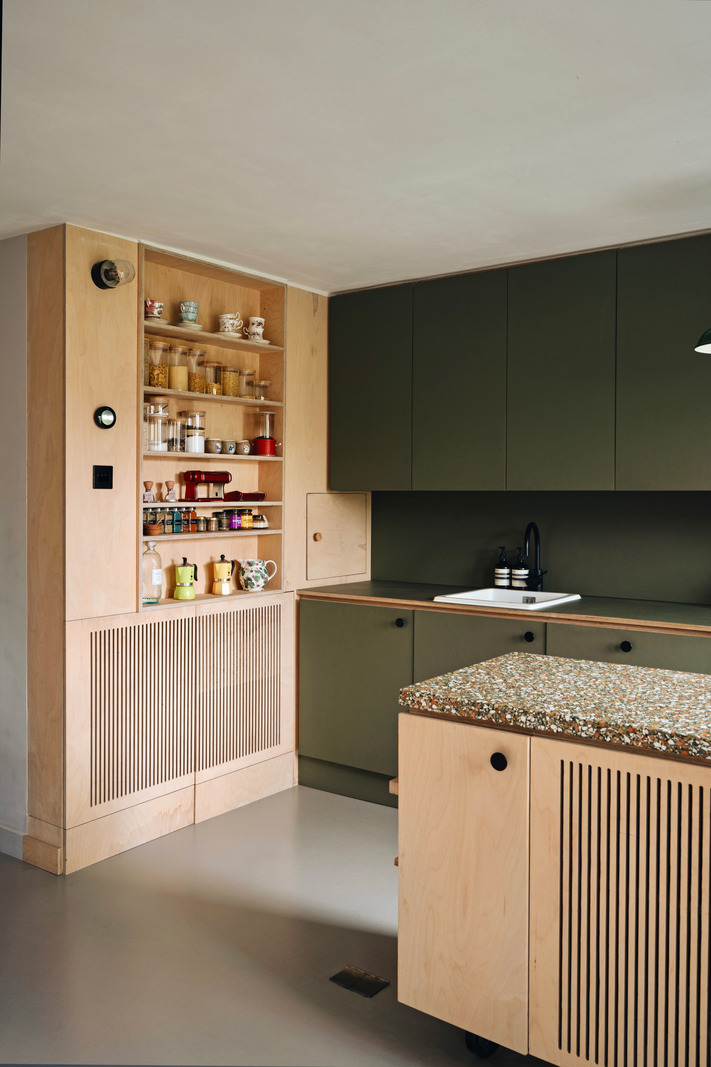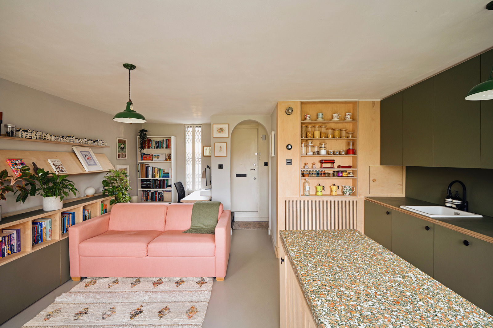 Installé le long de la New River Walk, ce petit duplex de 50m2 à Londres profite d’un cadre paisible et agréable. Dès l’entrée, une ouverture cintrée conduit naturellement vers la pièce de vie. Trois fenêtres à guillotine illuminent le salon et la cuisine. Le sol à base de liège durable et d'huiles naturelles, recouvre intégralement cet espace. La cuisine sur mesure intègre un îlot mobile. Son…