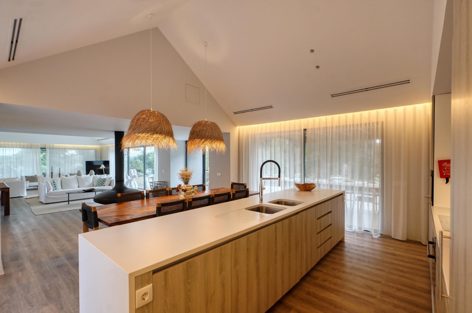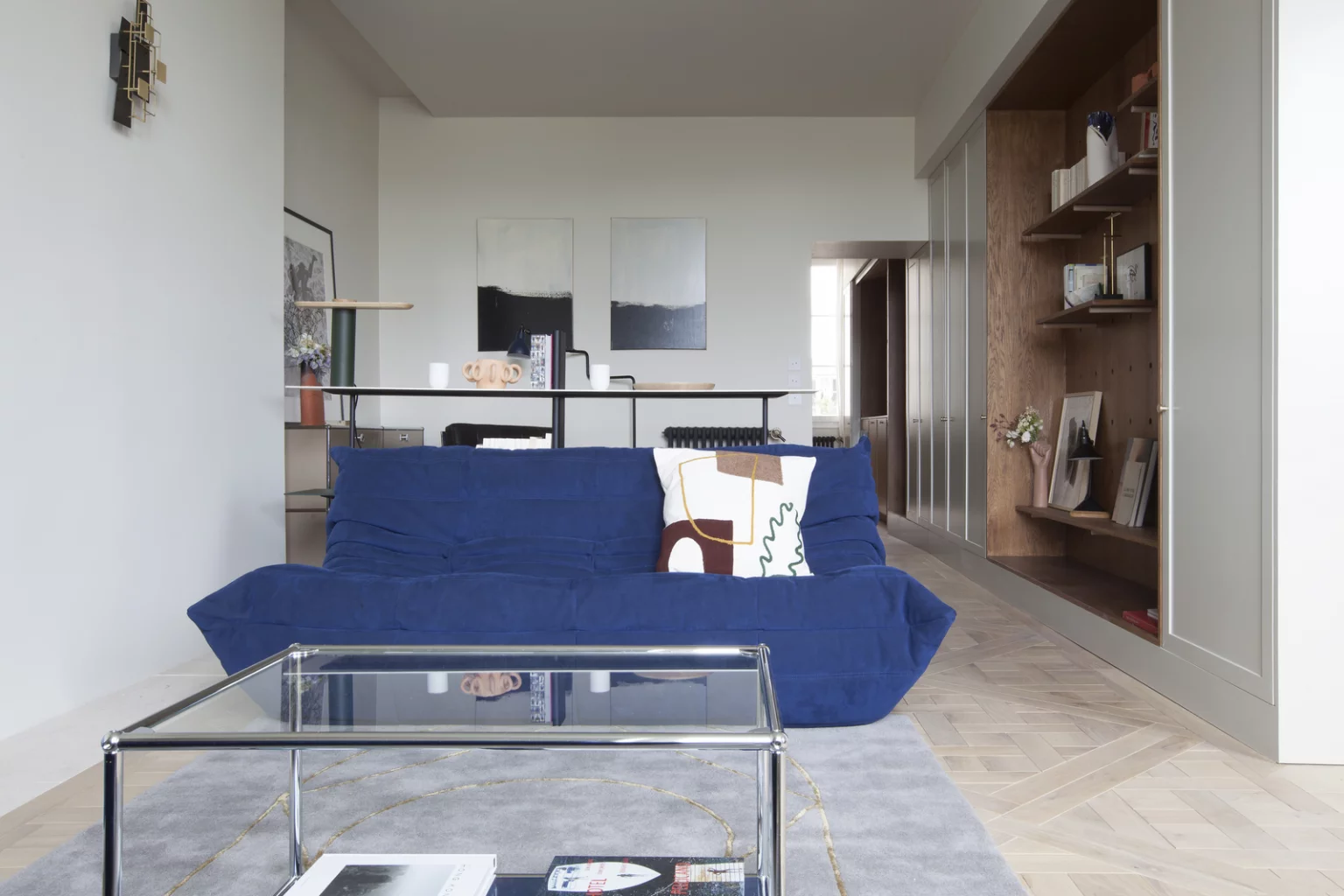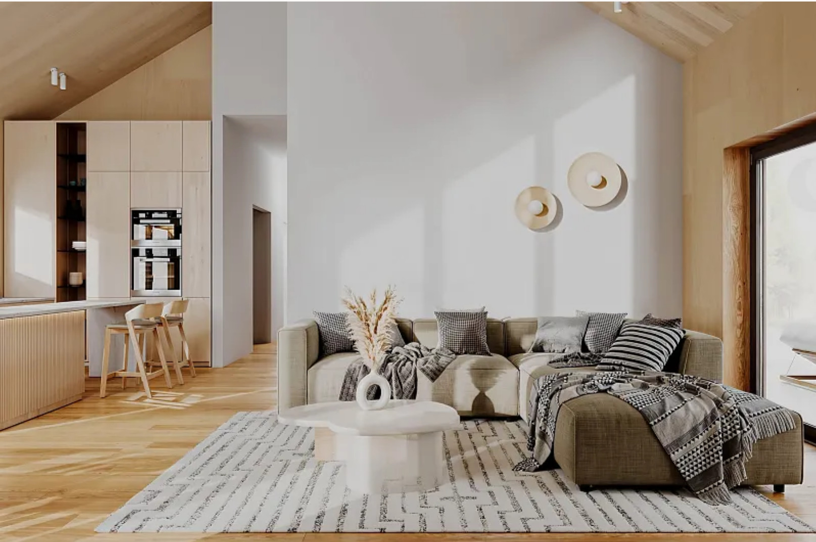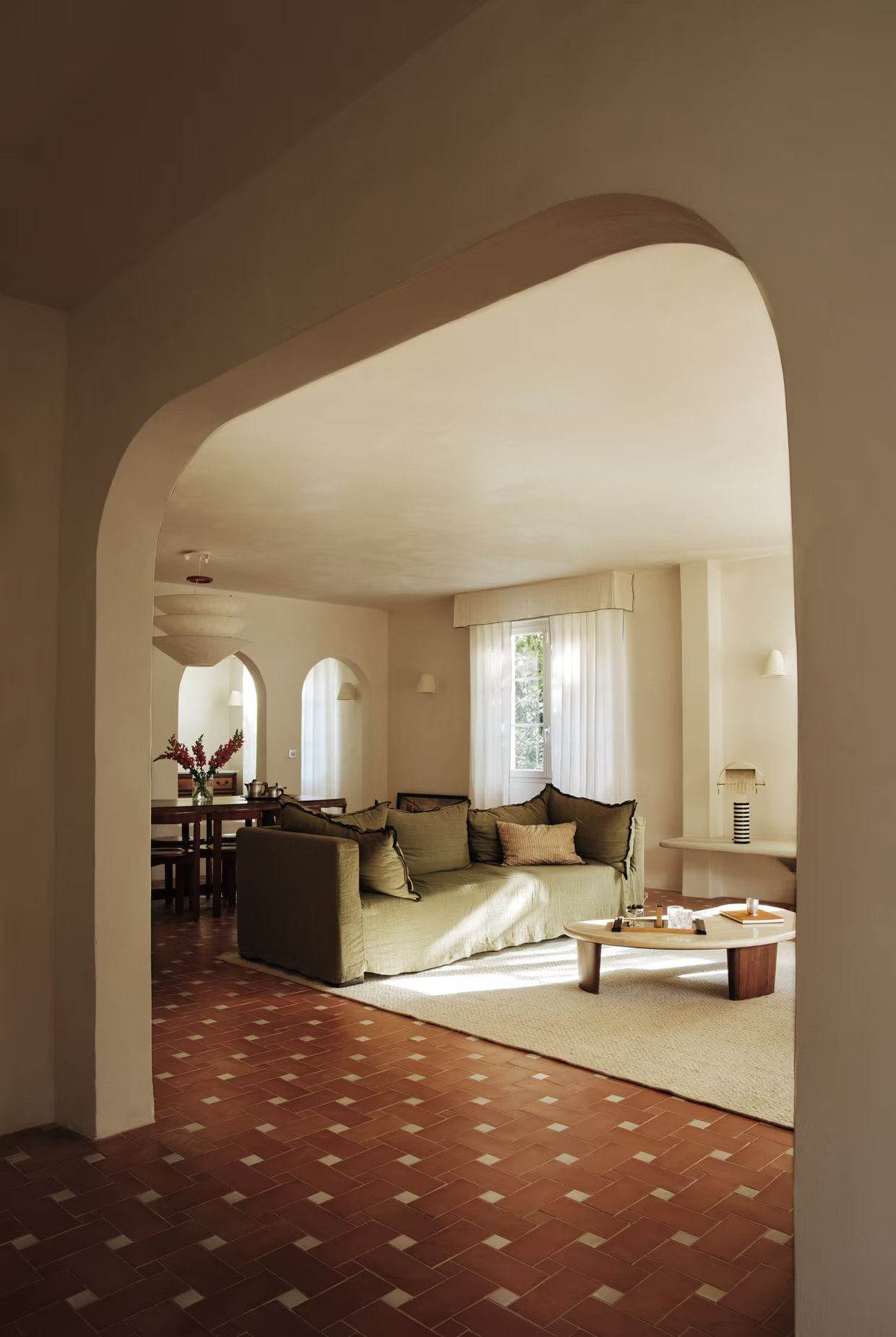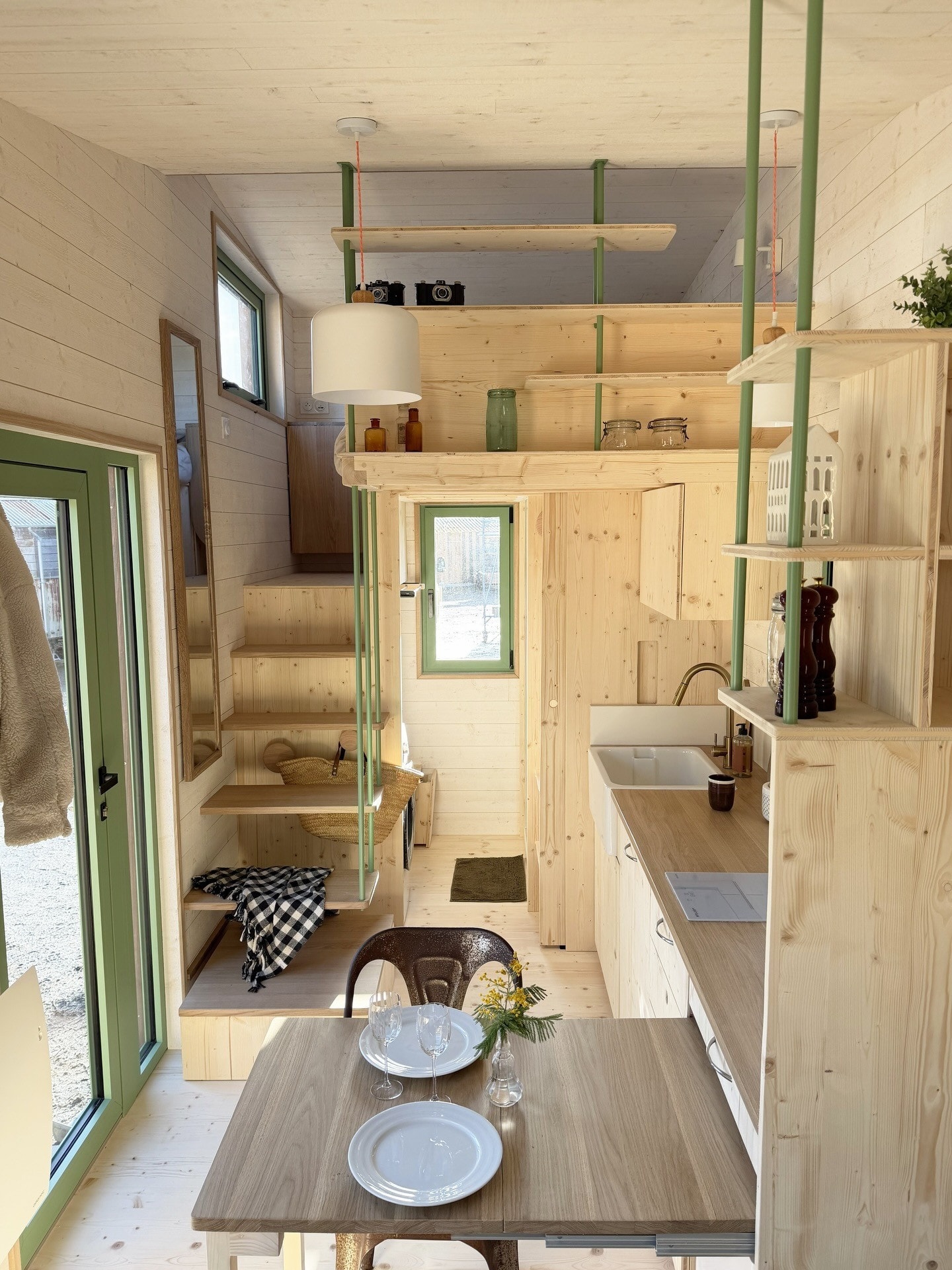 Dans ce studio suédois de 33m2, la cuisine vert foncé et l'agencement ouvert donnent le ton. Le séjour réunit le salon, la salle à manger et la cuisine dans un ensemble moderne et cohérent. La lumière circule librement grâce aux grandes fenêtres. Les matériaux naturels dominent avec le bois, le parquet clair et des touches de terre cuite. La table en bois dialogue avec le plan de travail et…