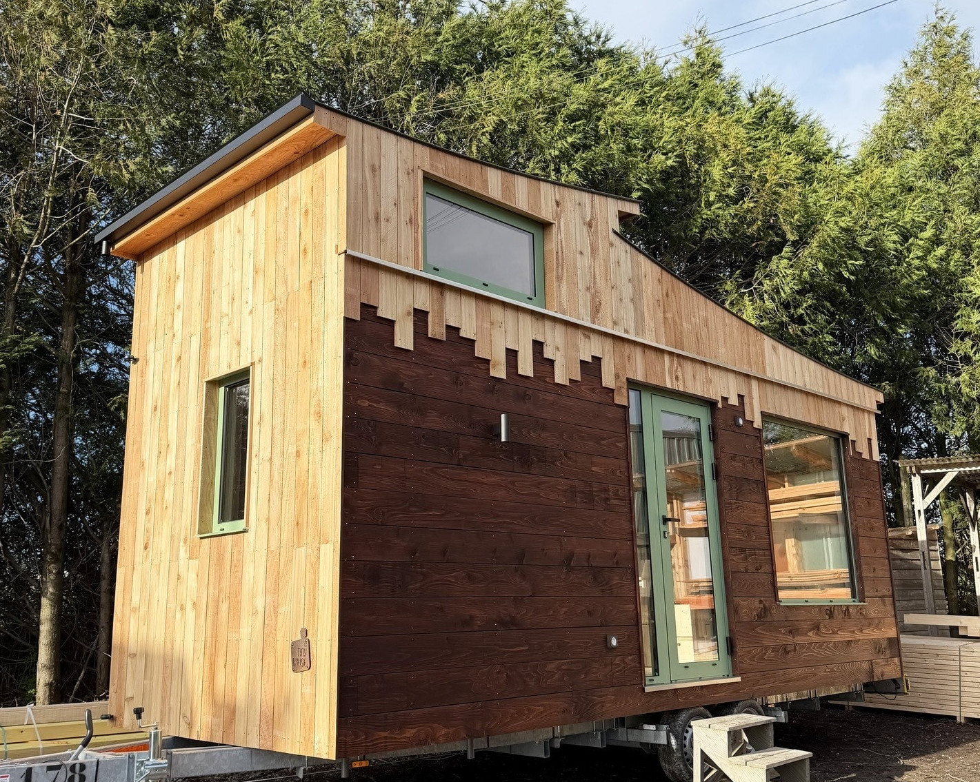 Cuisine vert foncé et chambre en alcôve dans un studio de 33m2