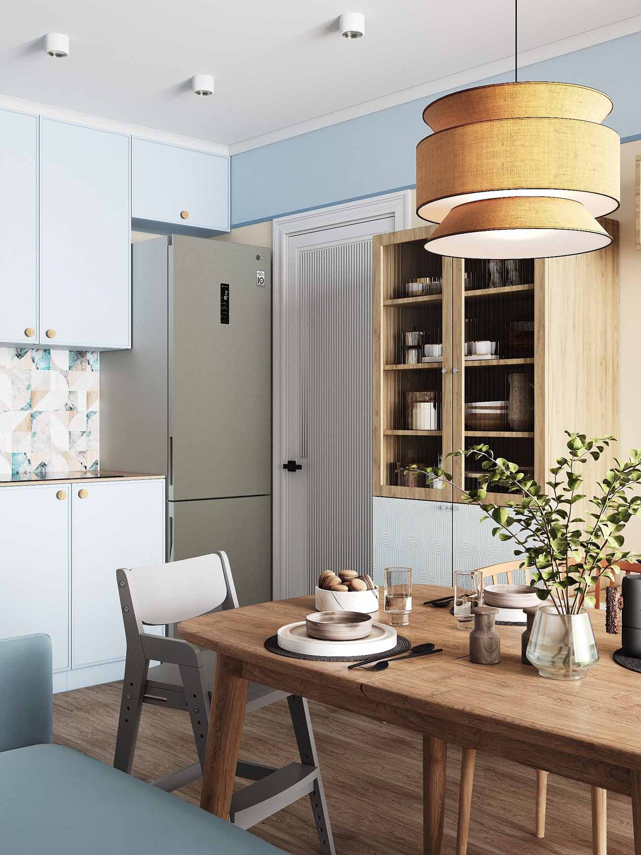 Sur une surface limitée, cette famille de quatre relève le défi du quotidien grâce à une organisation millimétrée et des rangements invisibles. Dans cet petit appartement de 54m2 optimisé, la priorité était claire dès le départ. Il fallait loger une famille sportive, active, et très organisée. La cuisine, pensée comme cœur social, associe façades bleu doux et sable. Les colonnes intègrent four…