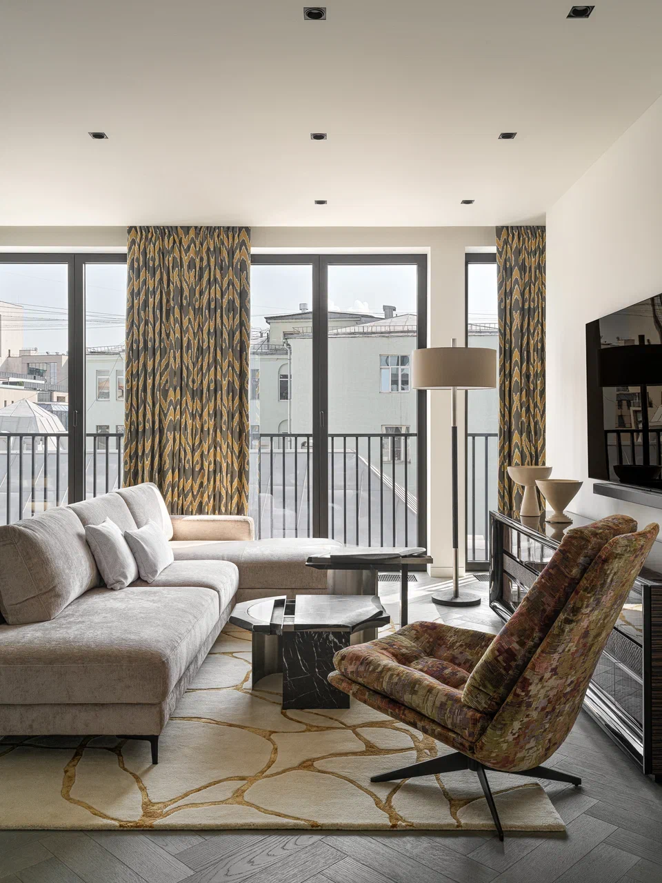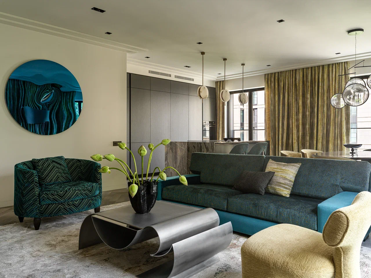 Dans cet appartement de 121m2, la décoration ne cherche pas l’effet spectaculaire. Elle est faite plutôt de choix équilibrés et raffinés. Dans une résidence prestigieuse, cet appartement élégant et classique a été pris en charge par la designer Anastasia Marchenkova de la gallerie Metamorphose. L’ensemble repose sur un dialogue délicat entre classicisme contemporain et esprit Art déco. Tout…