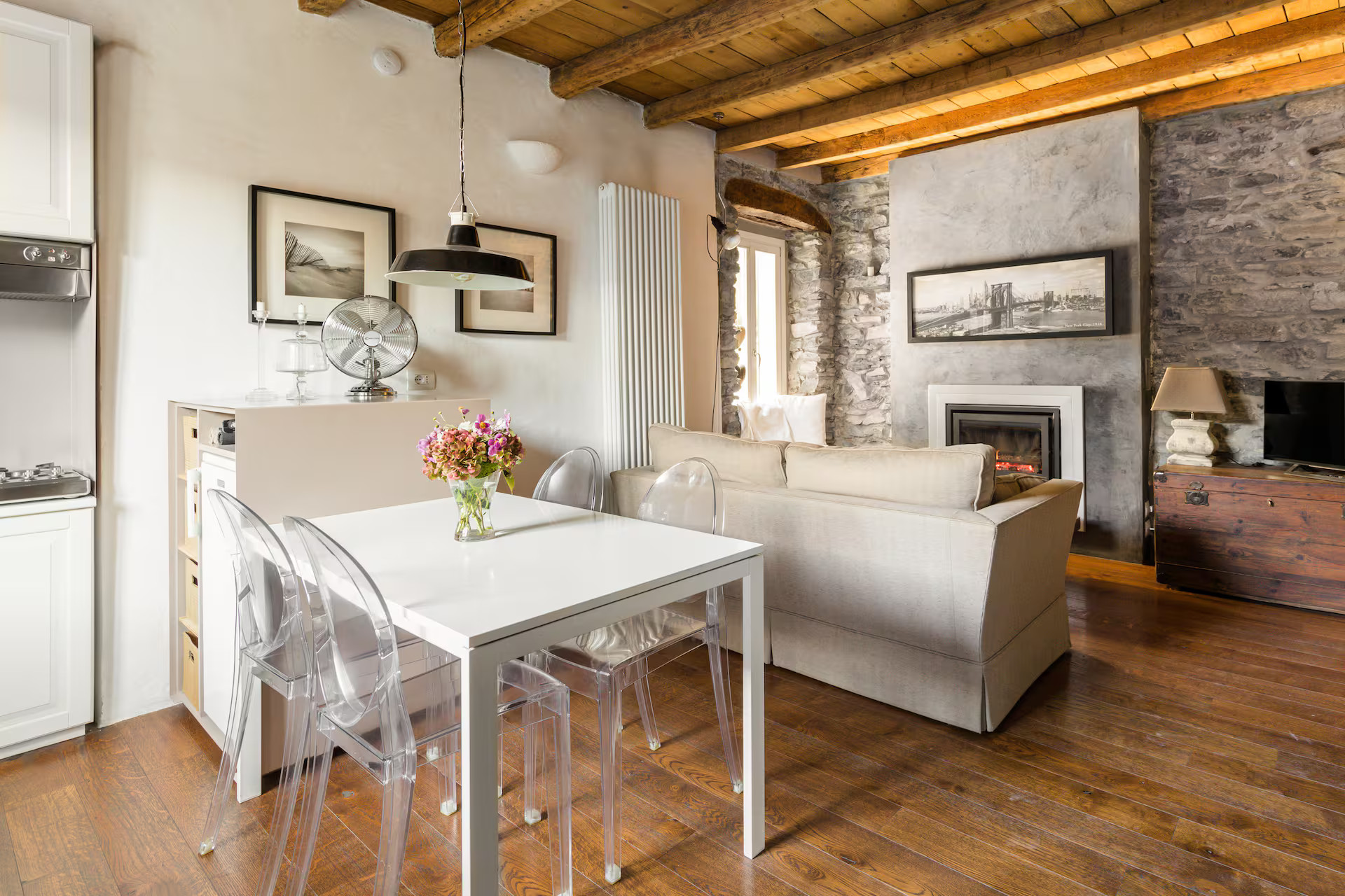 Cet appartement se trouve dans une maison en pierres grises et est décoré dans un style épuré qui laisse la vedette à cet écrin authentique. Il est situé dans le village de Sopravilla, où les ruelles et les escaliers serpentent entre les maisons anciennes. L’appartement se découvre derrière une façade discrète. Cet appartement de charme avec vue sur le lac de Côme, est une retraite simple,…