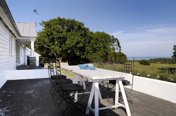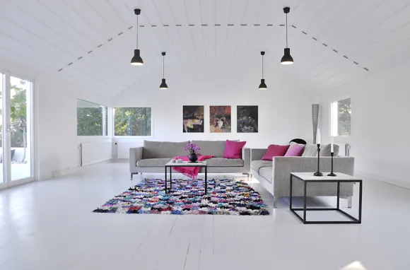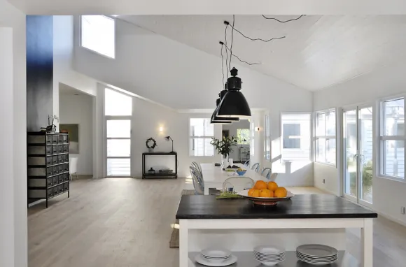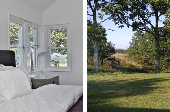 In southern Sweden, Malmö, on an elevated position and looking towards the surrounding hills and the sea horizon, this large house of 500m ² with its metal roof is surrounded by oaks.